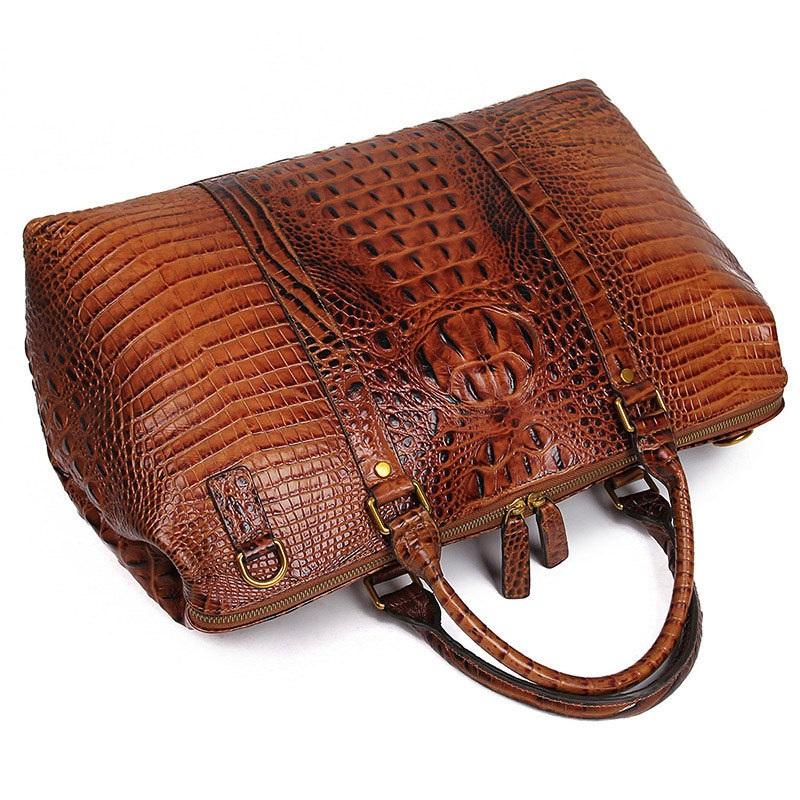 Design: Cool Crocodile Pattern Leather Men's Travel Bag Overnight Bag Weekender Bag For Men