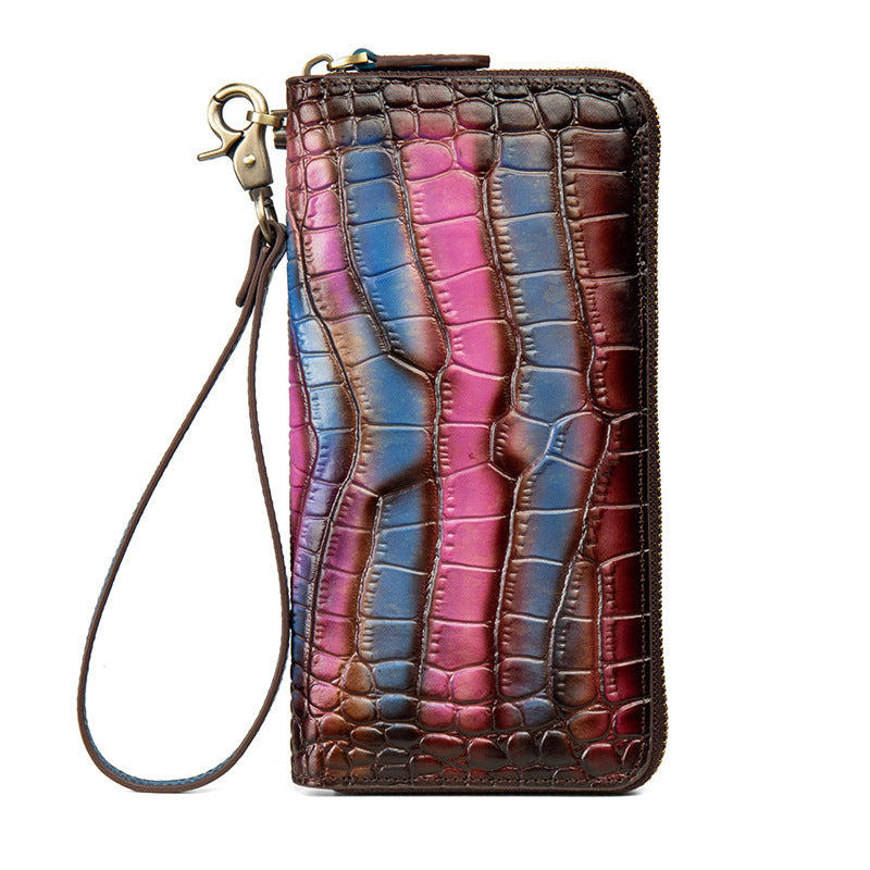Design: Crocodile Pattern Leather Wristlet Wallet Womens Zip Around Wallets CONTRAST COLOR Ladies Zipper Clutch Wallets for Women