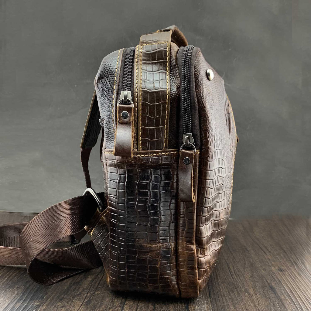 Design: BADASS BROWN LEATHER MEN'S SLING BAG ONE SHOULDER BACKPACK CHEST BAG SLING BAG FOR MEN