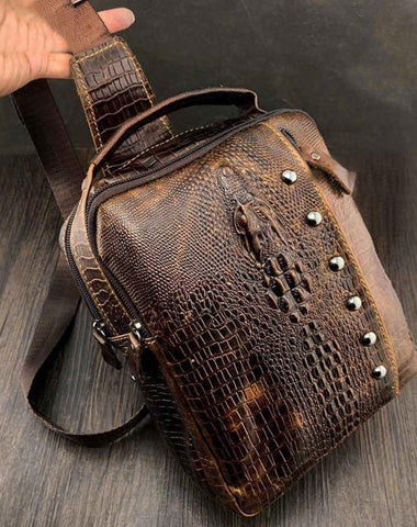 Design: Badass Brown Leather Men's Sling Bag Chest Bag One shoulder Backpack Sling Bag For MenOverview: