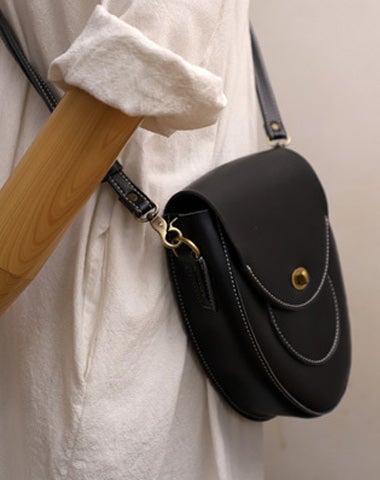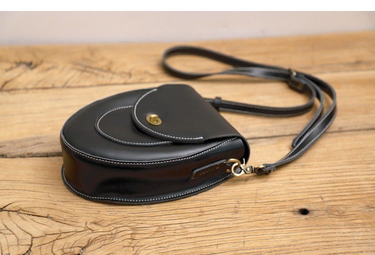 Cute Black LEATHER Saddle Side Bag WOMEN SHOULDER BAG Crossbody Saddle Purse FOR WOMEN