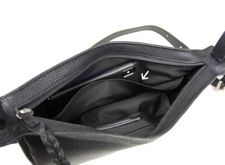 Design: Cute Black Leather Womens Sling Bag Shoulder Bag Crossbody Saddle Bag for Women