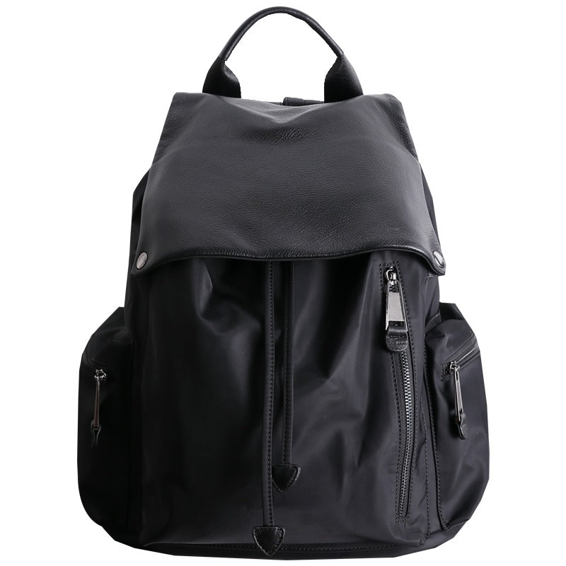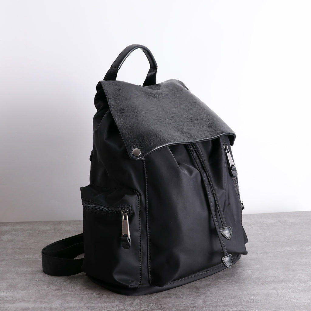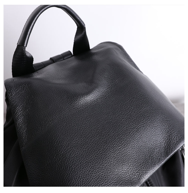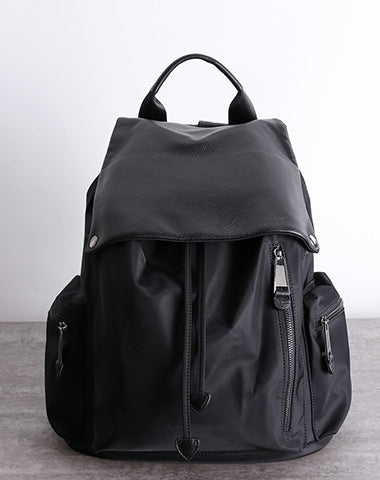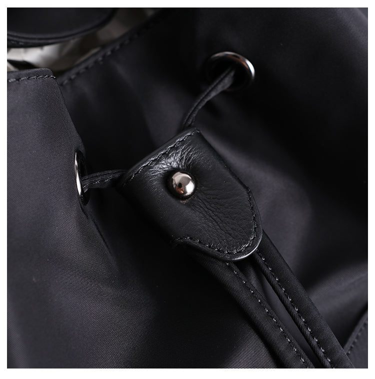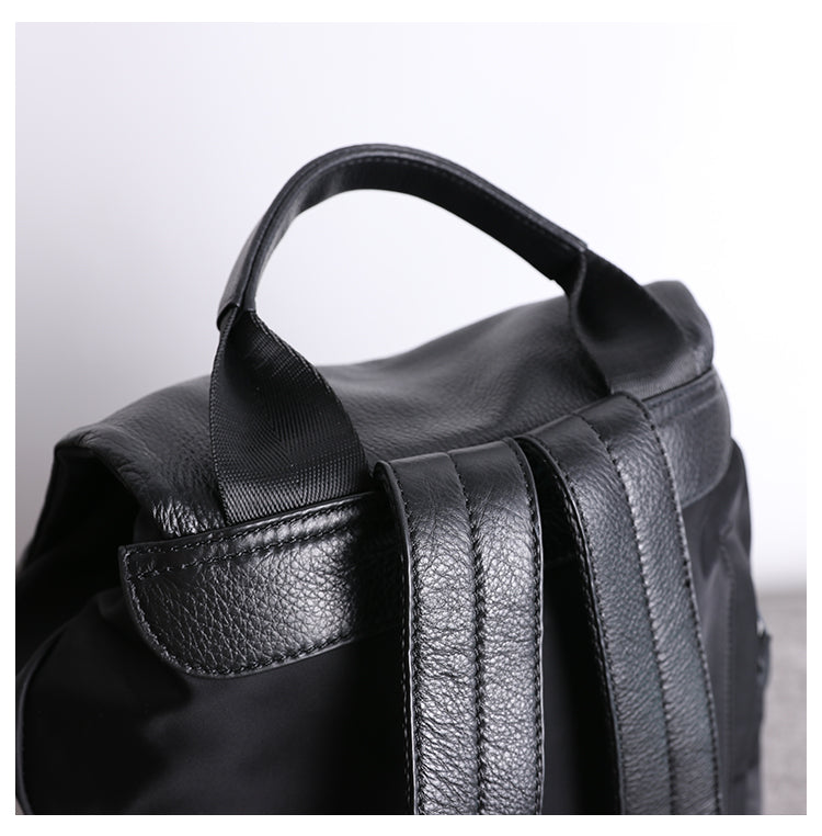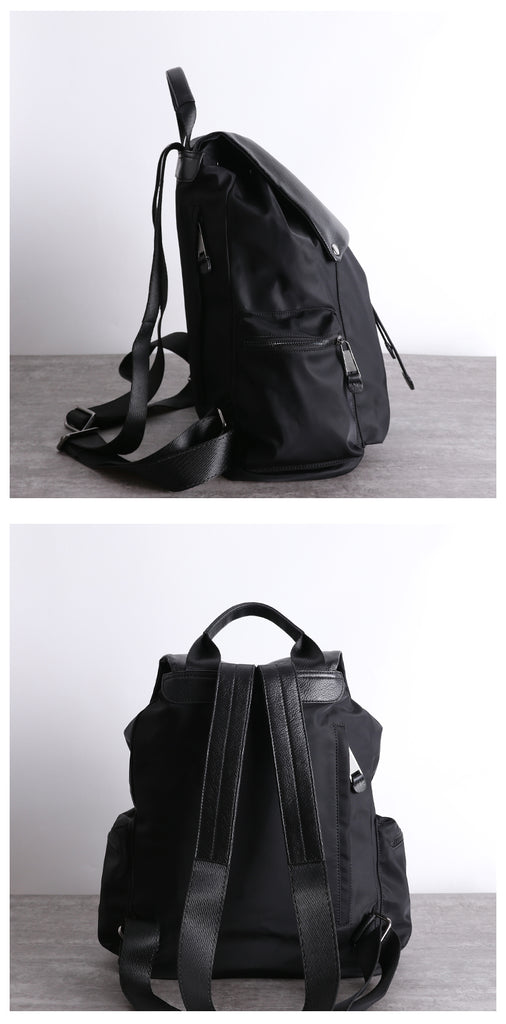 Design: Cute Black Nylon Satchel Backpack Womens School Backpack Purse Black Nylon Leather Travel Rucksack for Ladies