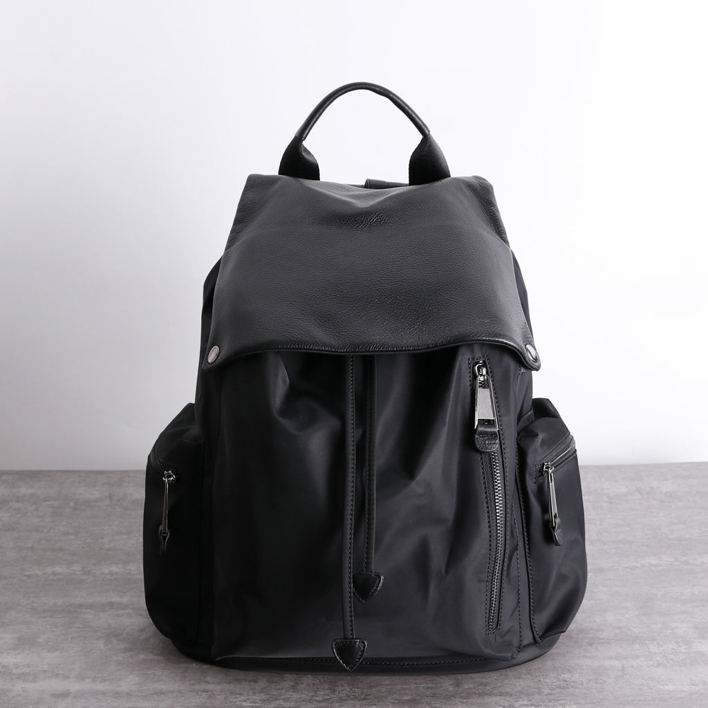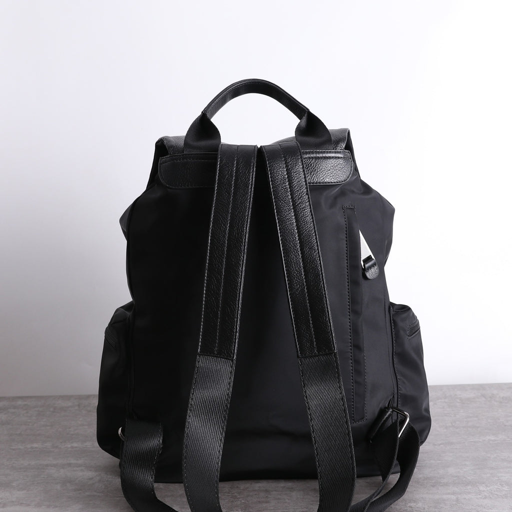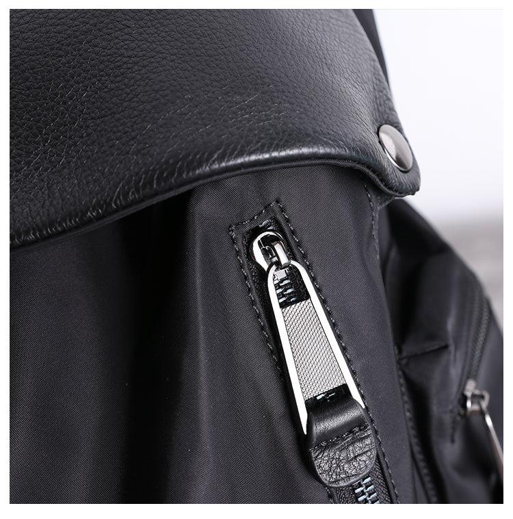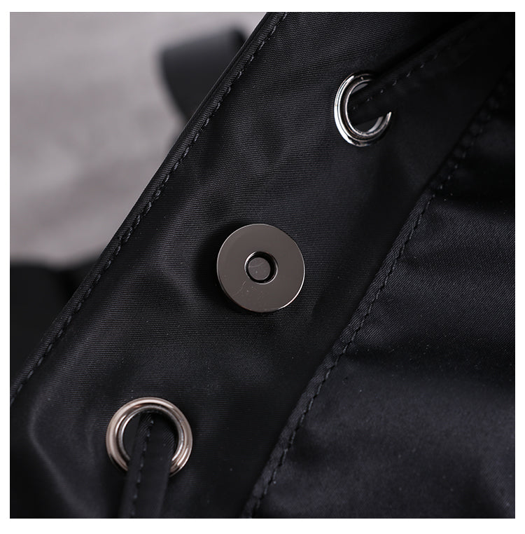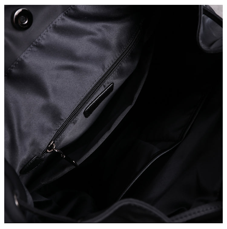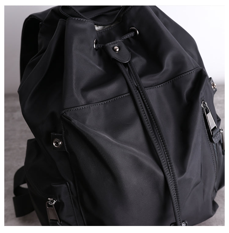 Design: Cute Black Nylon Satchel Backpack Womens School Backpack Purse Black Nylon Leather Travel Rucksack for Ladies