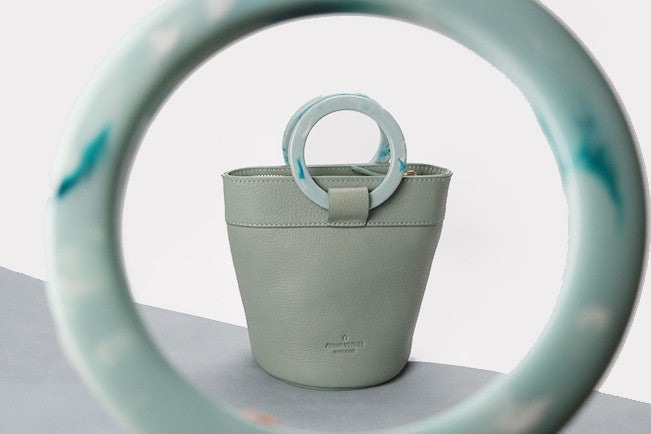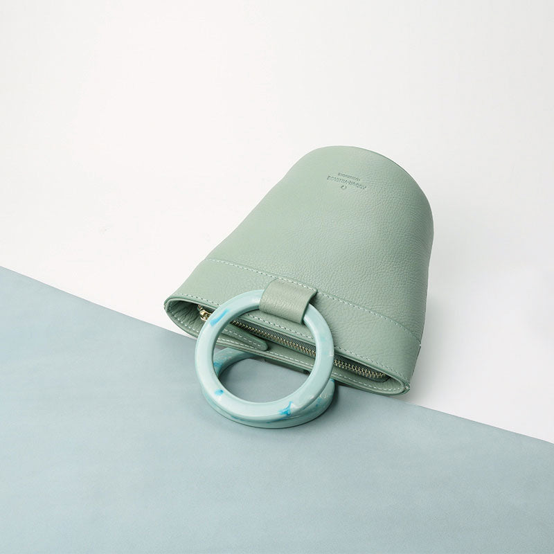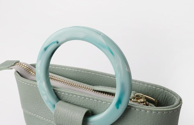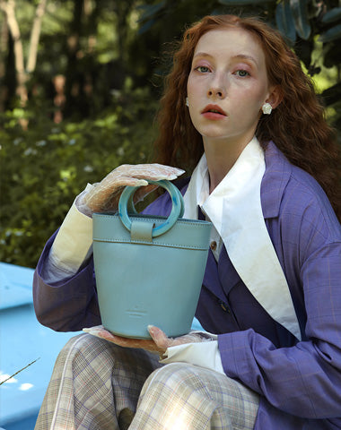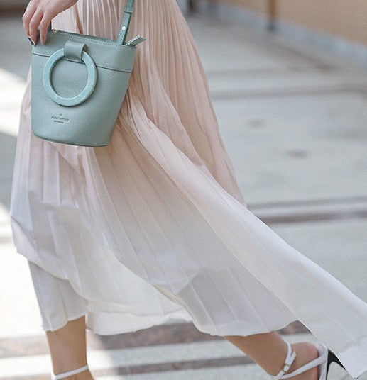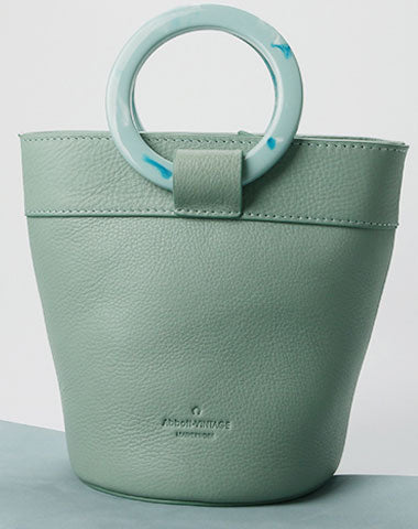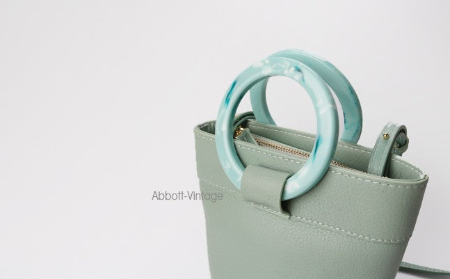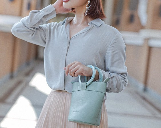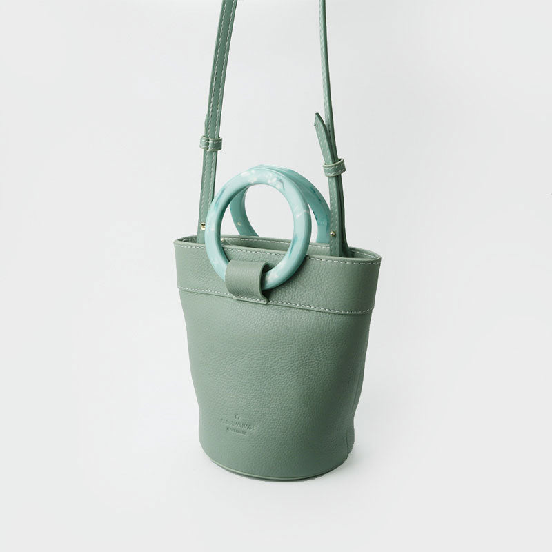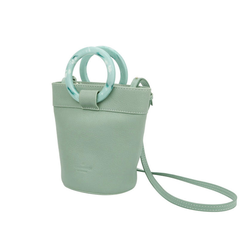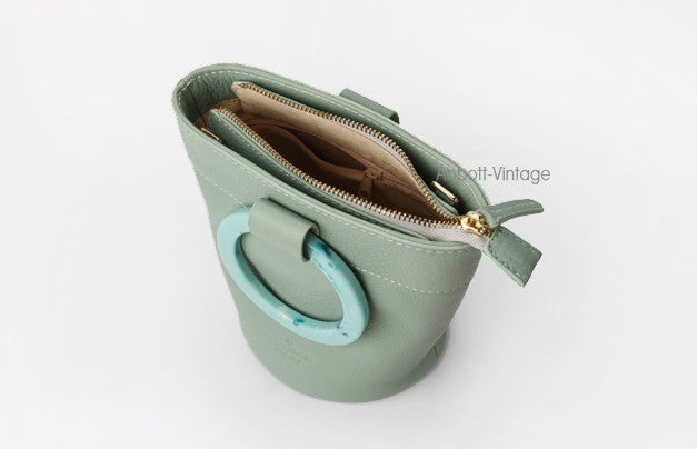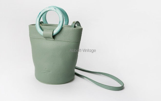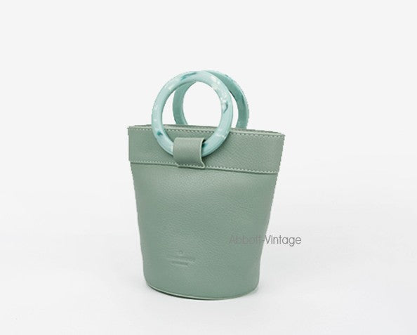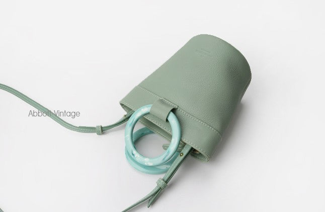 Design: Cute Green Leather Womens Mini Bucket Purse Handbag Barrel Shoulder Bag for Women