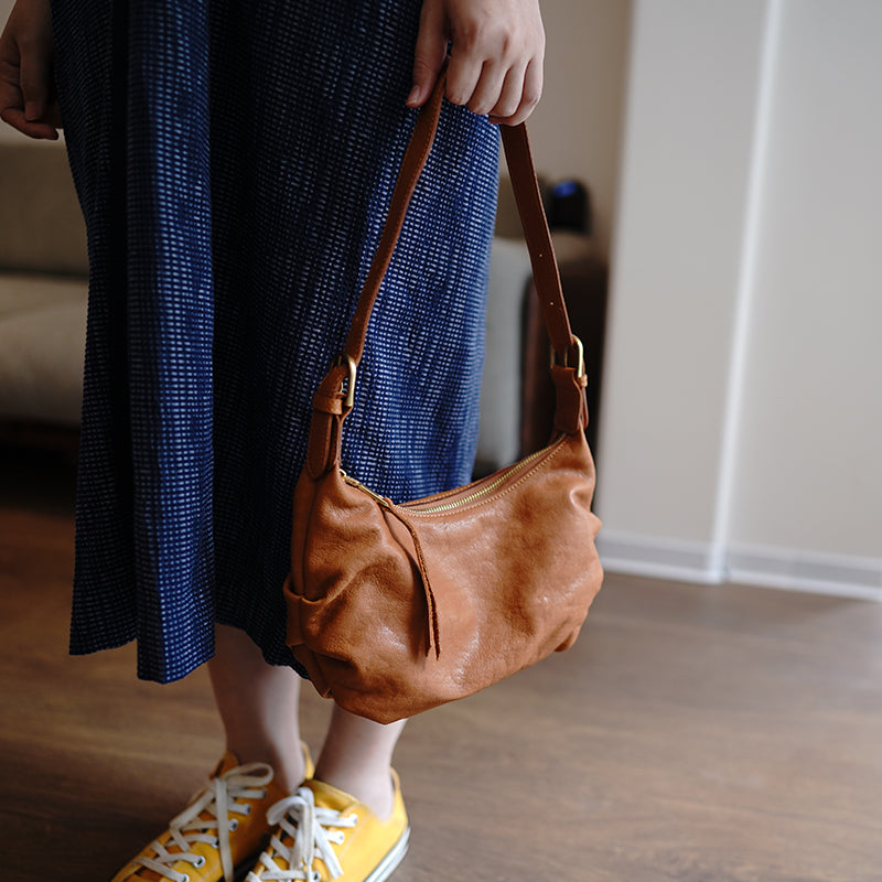 Design: Cute Brown Leather Baguette Bag Women Baguette Shoulder Bag for Women