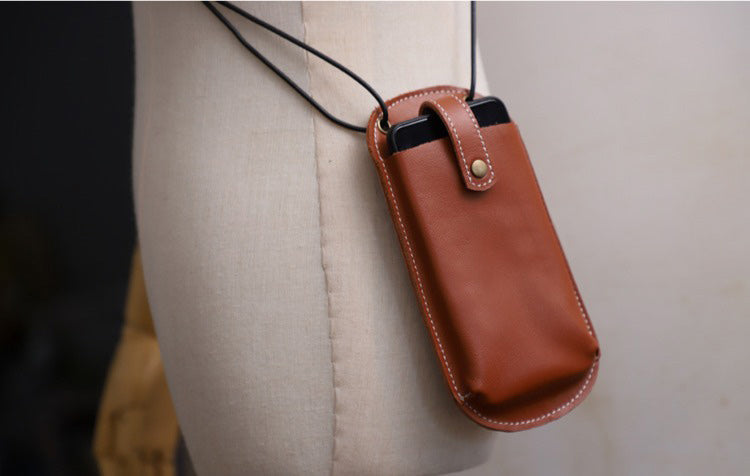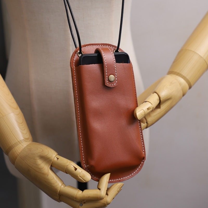 Design: Cute Brown LEATHER Phone WOMEN SHOULDER BAG Slim Phone Crossbody Purse FOR WOMEN
