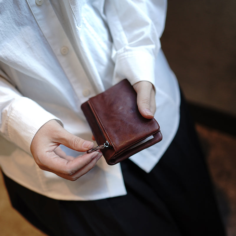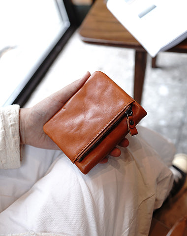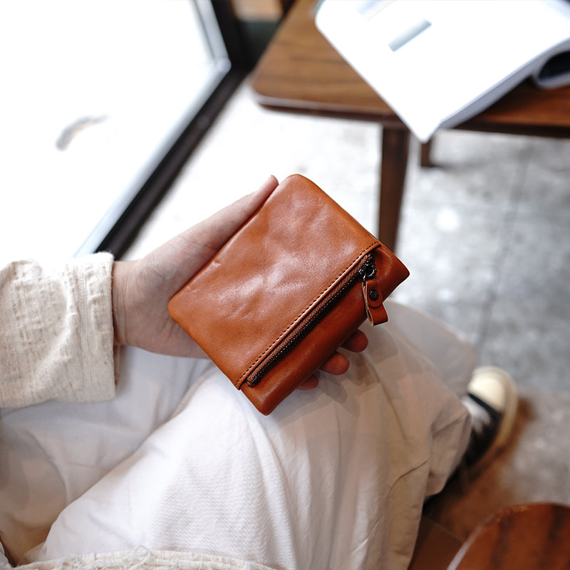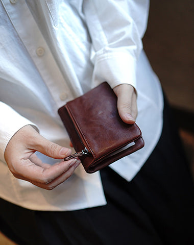 Style: Cute Brown Leather Womens Billfold Wallet Classic Vertical Small Wallet For Women