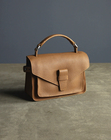 Design: Cute Brown Mini Leather Womens Satchel Handbag Small Satchel Shoulder Bag Small Satchel Bag for Women