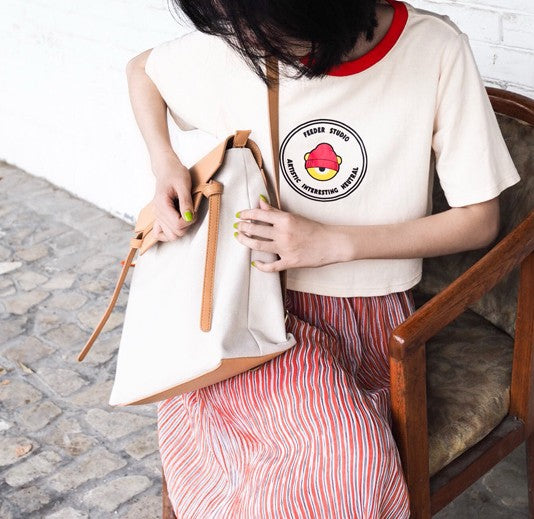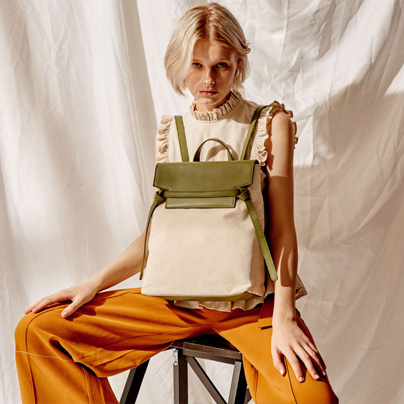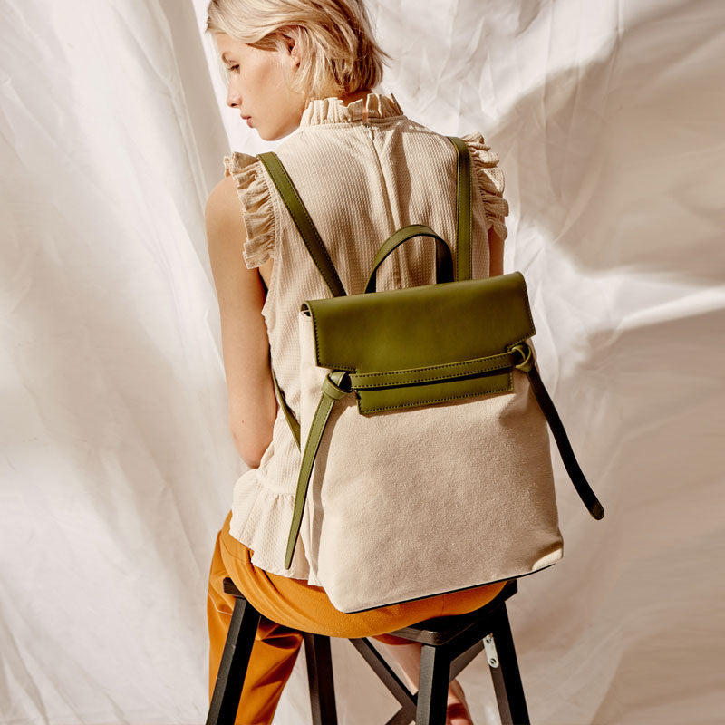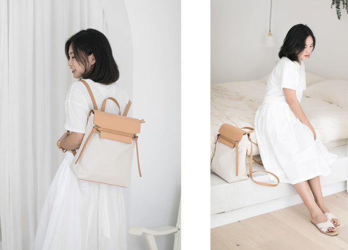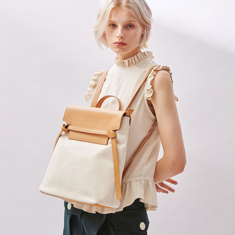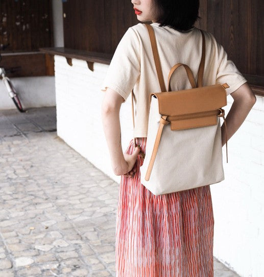 Design: Cute Canvas Leather Womens Backpack Travel Backpack School Backpack for Women
