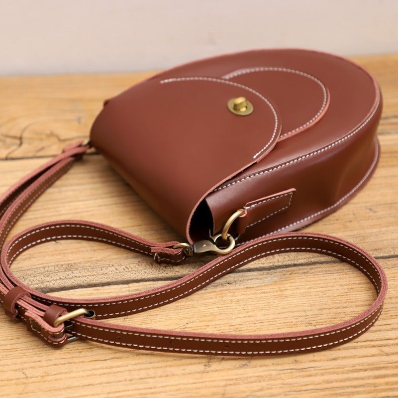 Cute Coffee LEATHER Saddle Side Bag WOMEN SHOULDER BAG Crossbody Saddle Purse FOR WOMEN