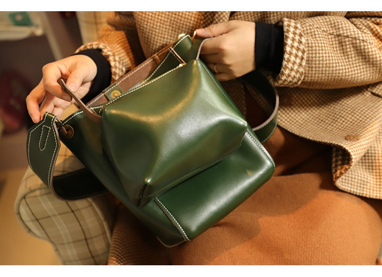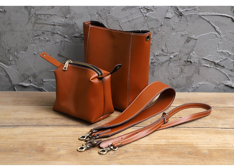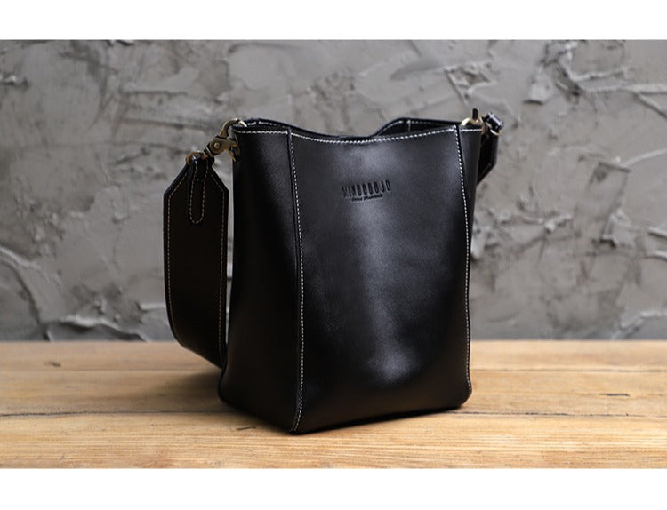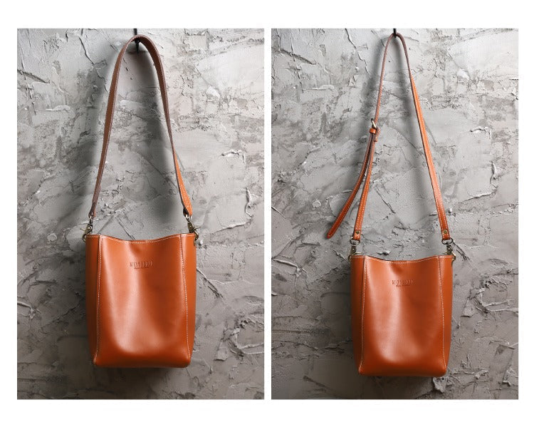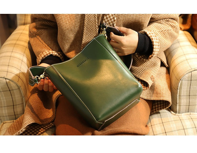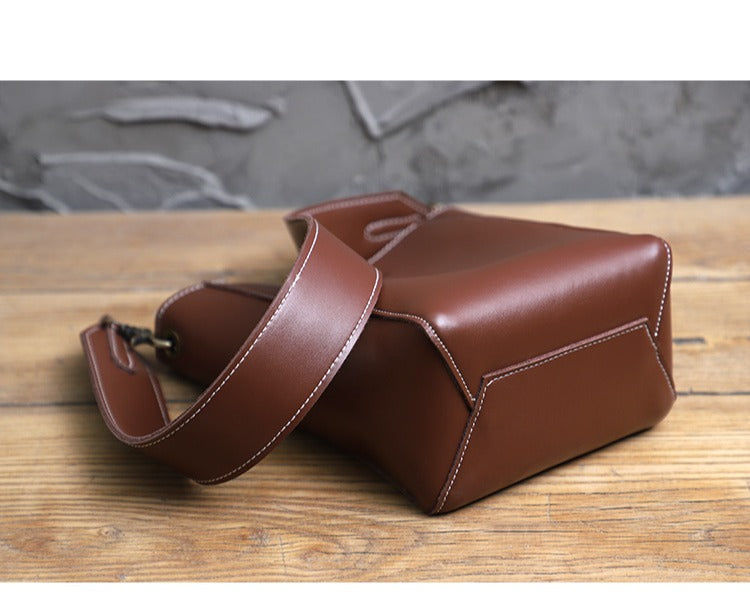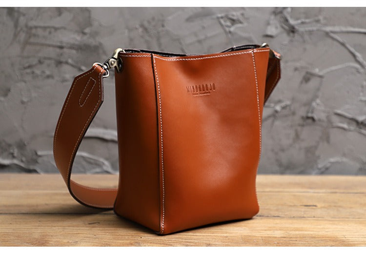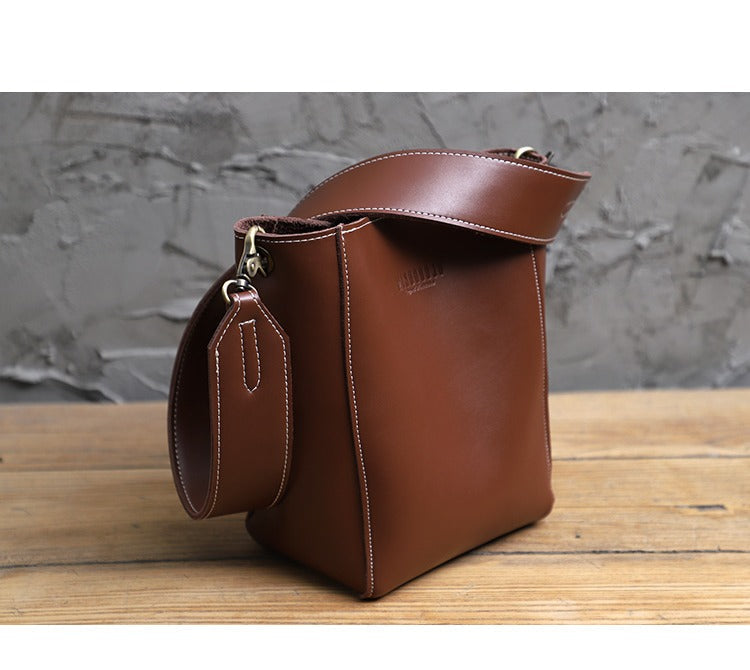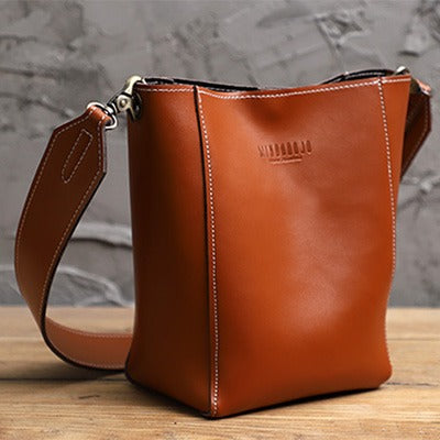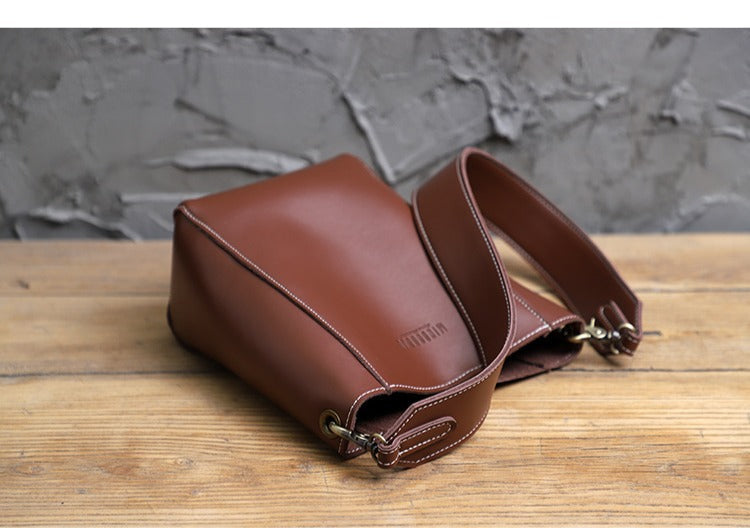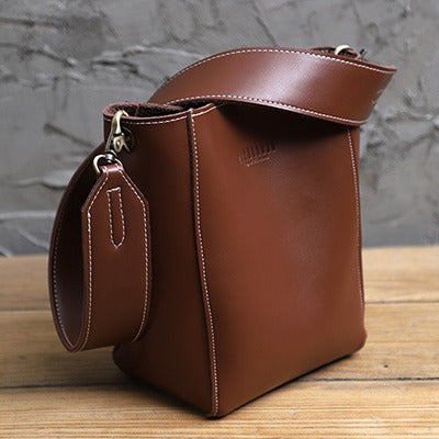 Design: Cute Coffee LEATHER WOMEN Bucket SHOULDER BAG Barrel Crossbody Purses FOR WOMEN