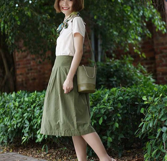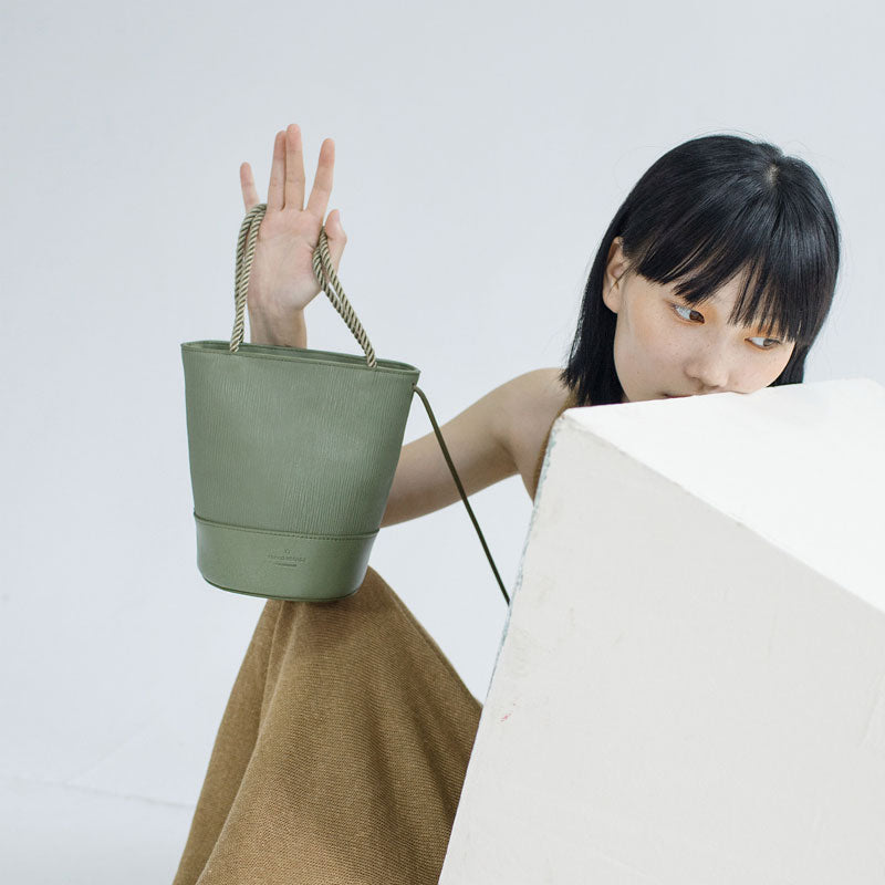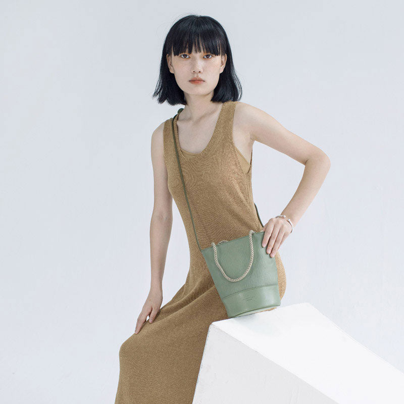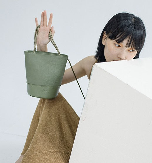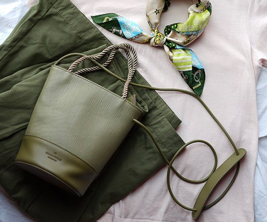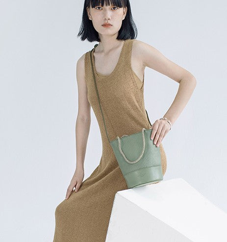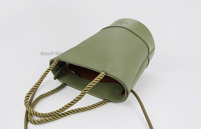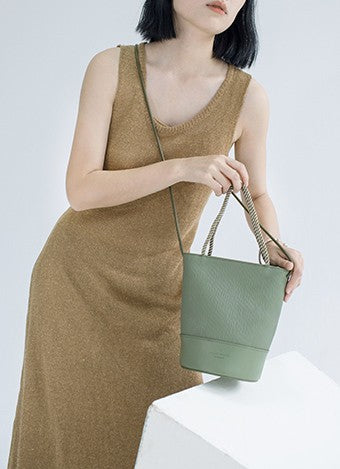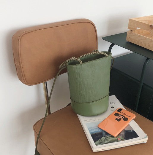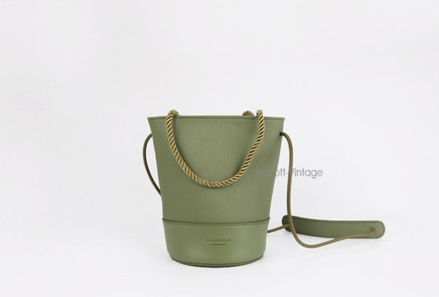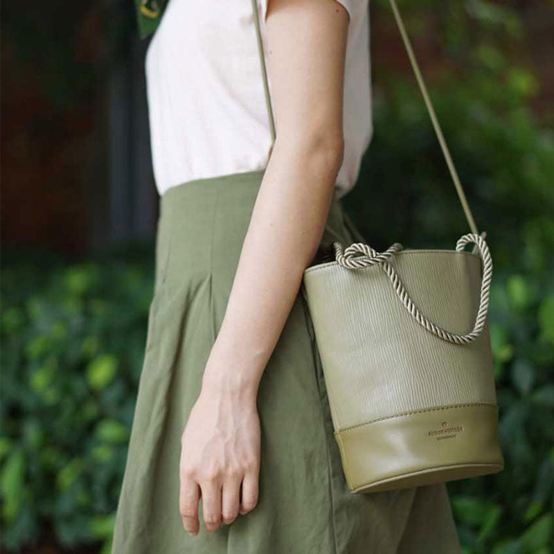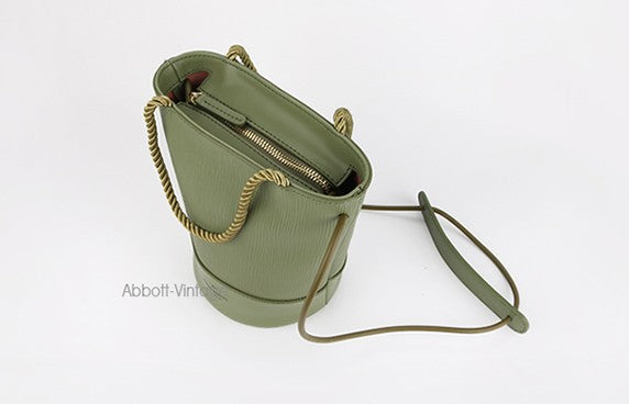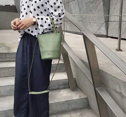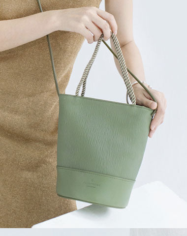 Design: Cute Green Leather Womens Mini Bucket Purse Handbag Barrel Shoulder Bag for Women