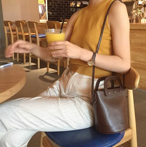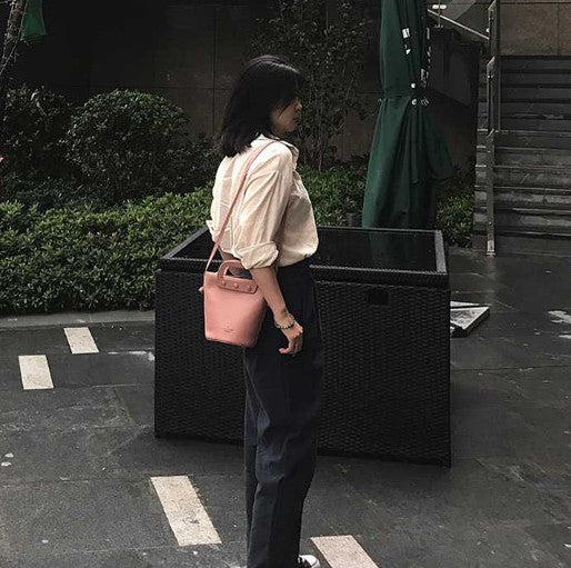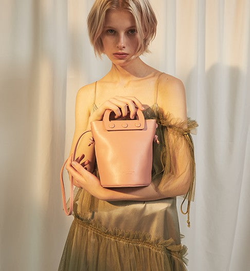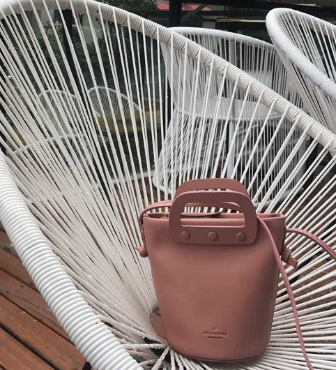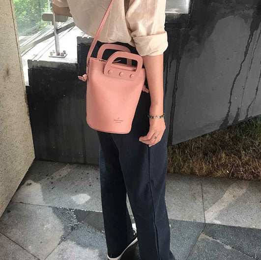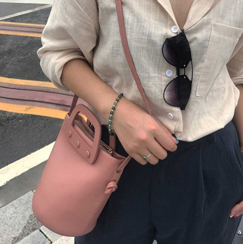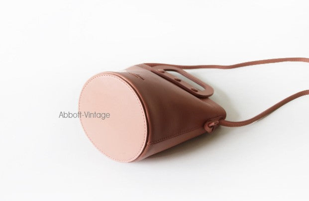 Style: Cute Leather Pink Womens Mini Bucket Purse Handbag Barrel Shoulder Bag for Women