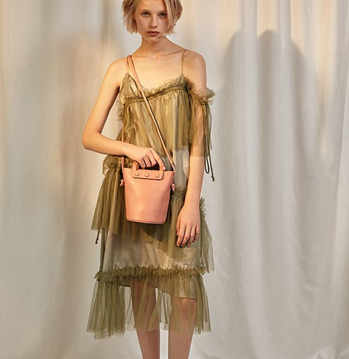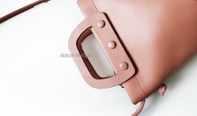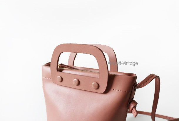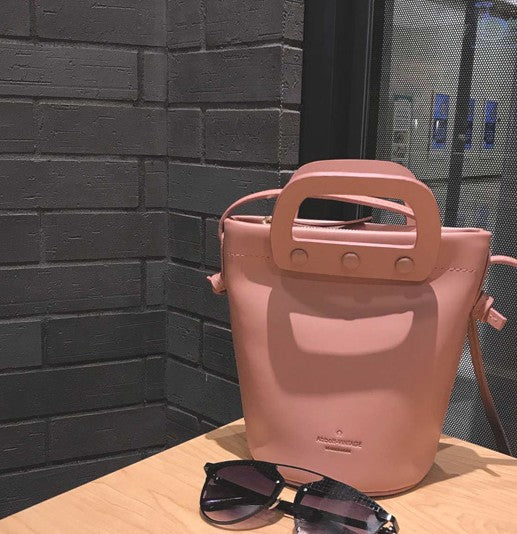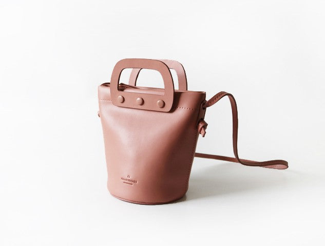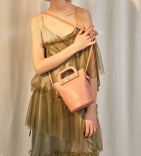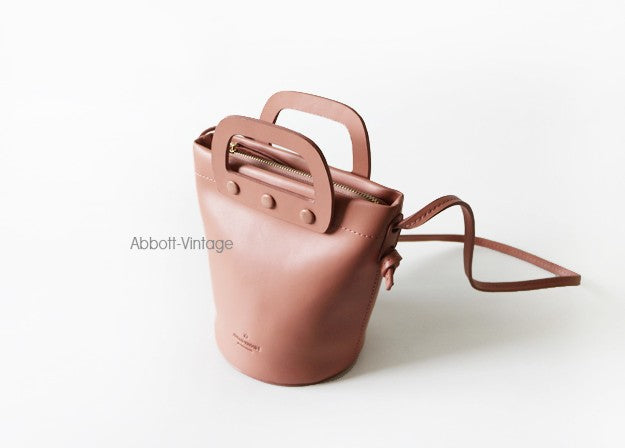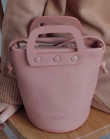 Design: Cute Leather Pink Womens Mini Bucket Purse Handbag Barrel Shoulder Bag for Women