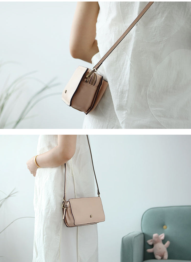 Style: Cute Leather Womens Small Box Crossbody Bag Purse Zipper Shoulder Bag for Women