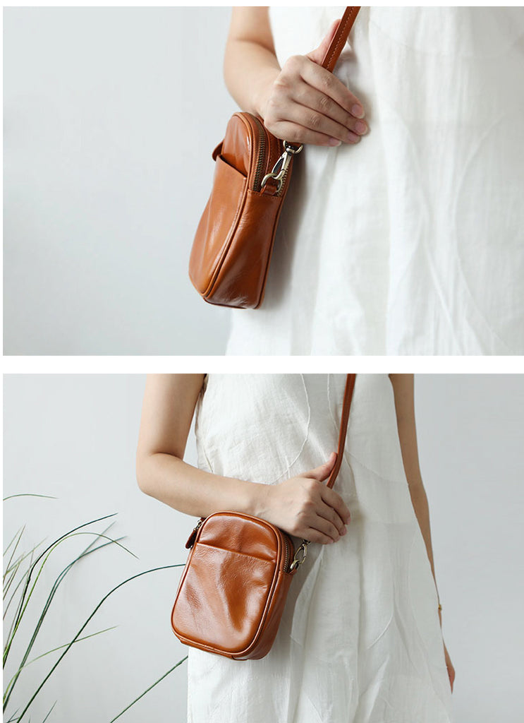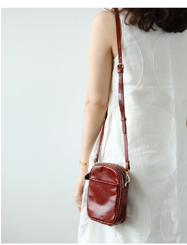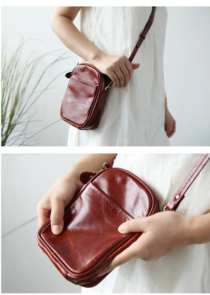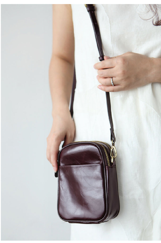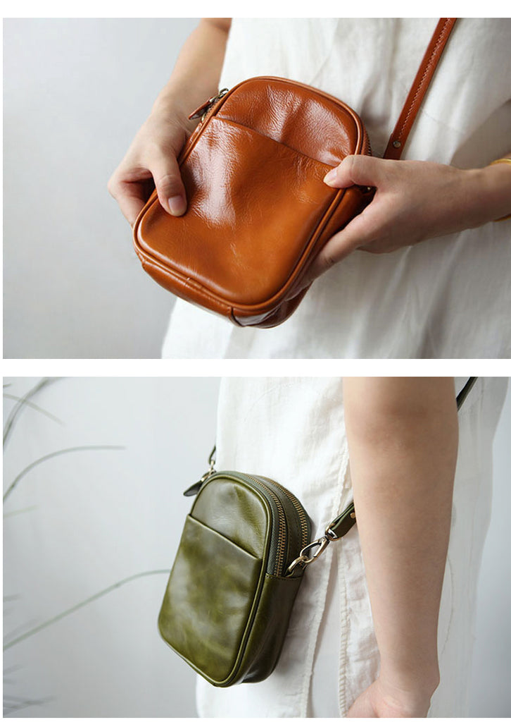 Design: Cute Leather Womens Small Cell Phone Crossbody Bag Purse Double Zipper Shoulder Bag for Women