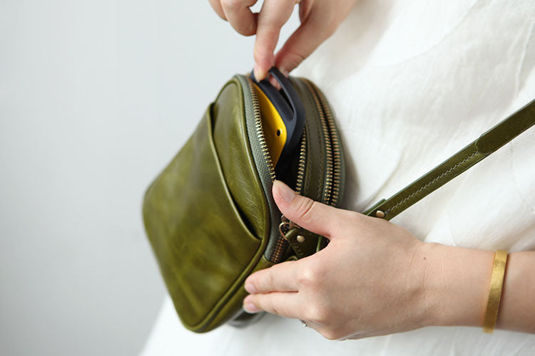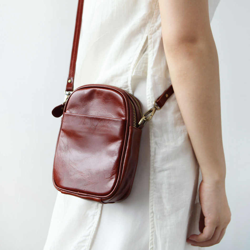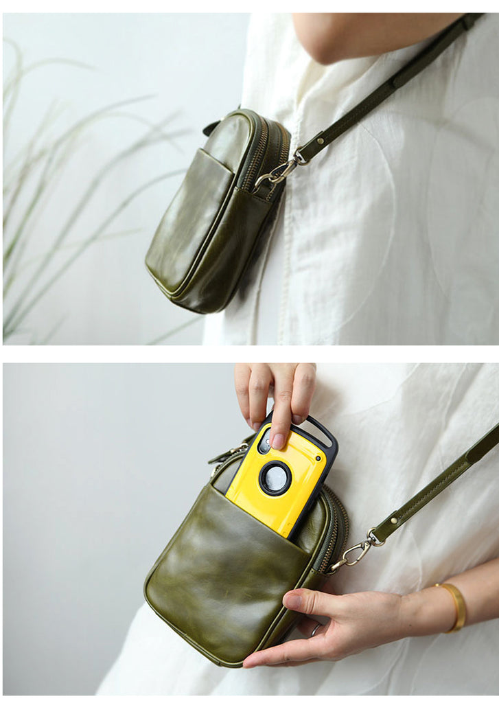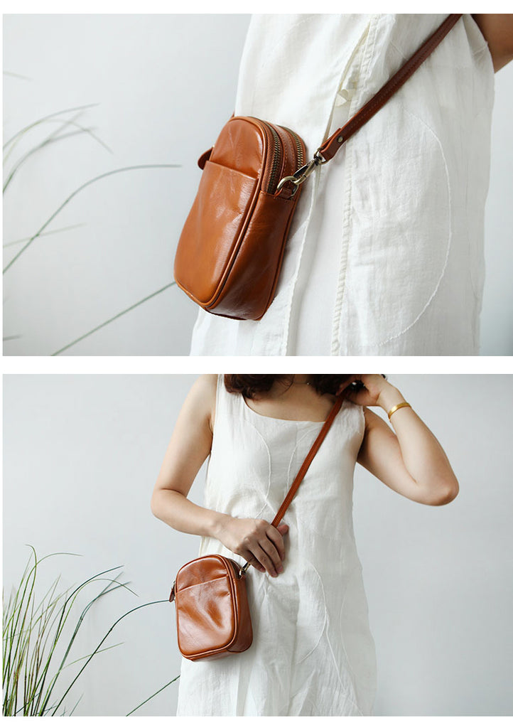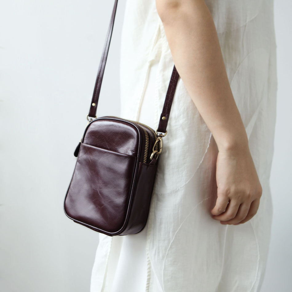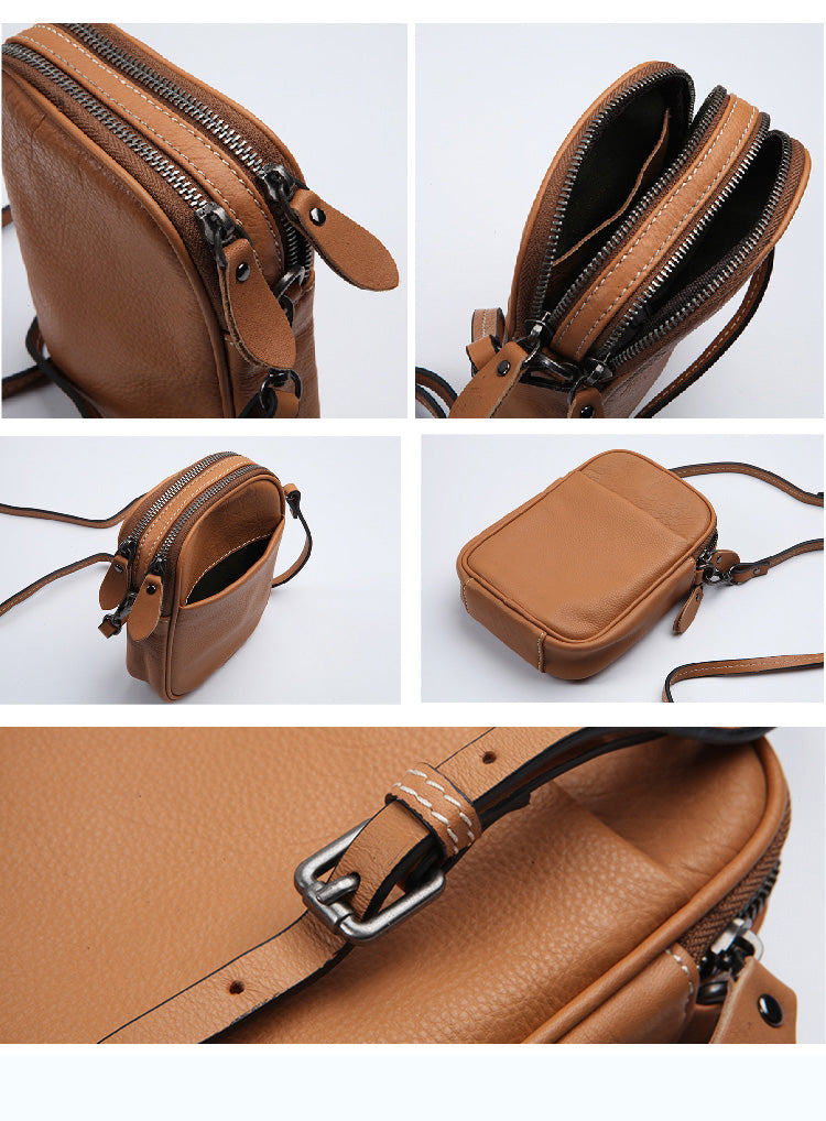Design: Cute Leather Womens Small Cell Phone Crossbody Bag Purse Double Zipper Shoulder Bag for Women