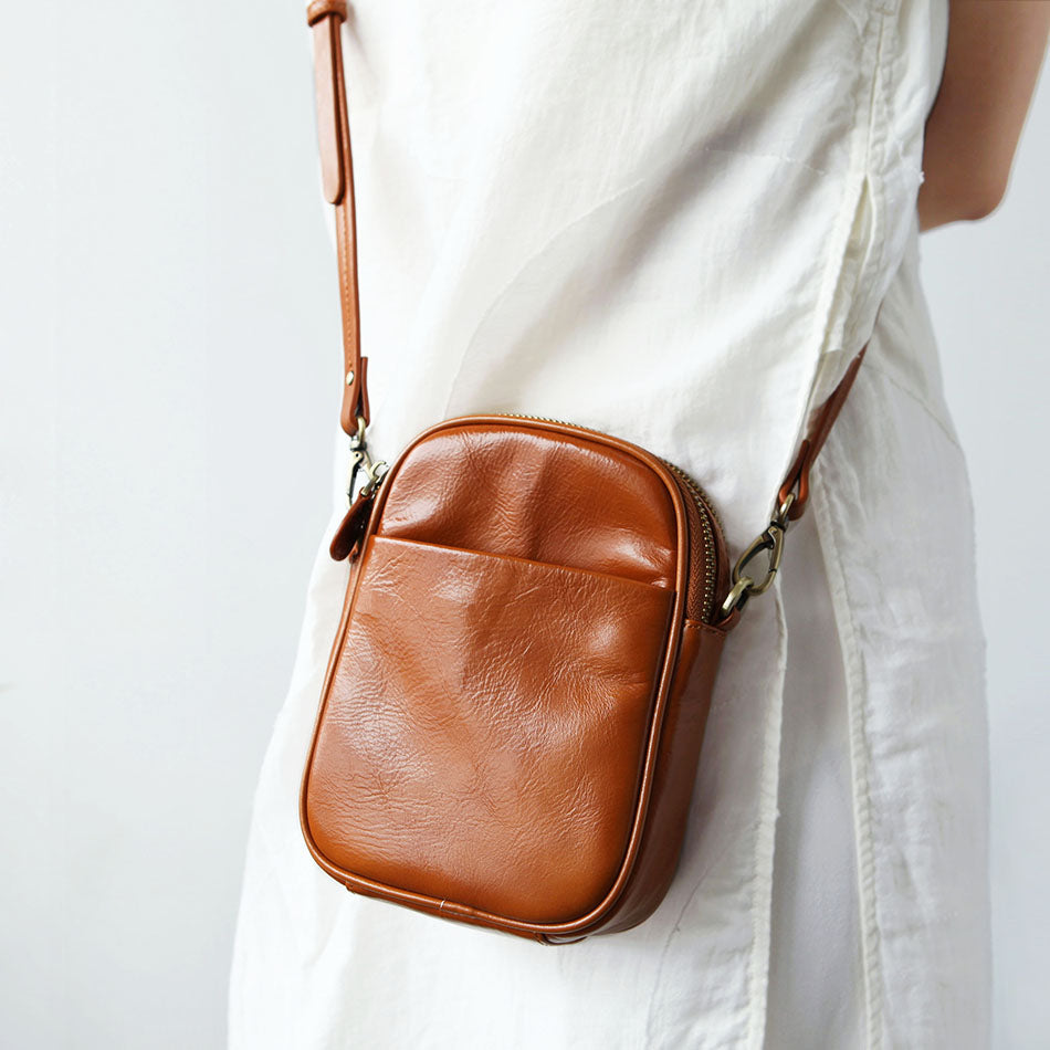 Cute Leather Womens Small Cell Phone Crossbody Bag Purse Double Zipper Shoulder Bag for Women