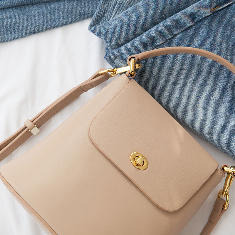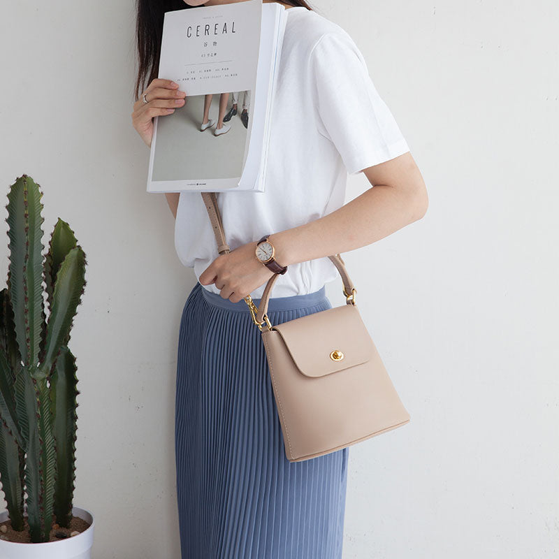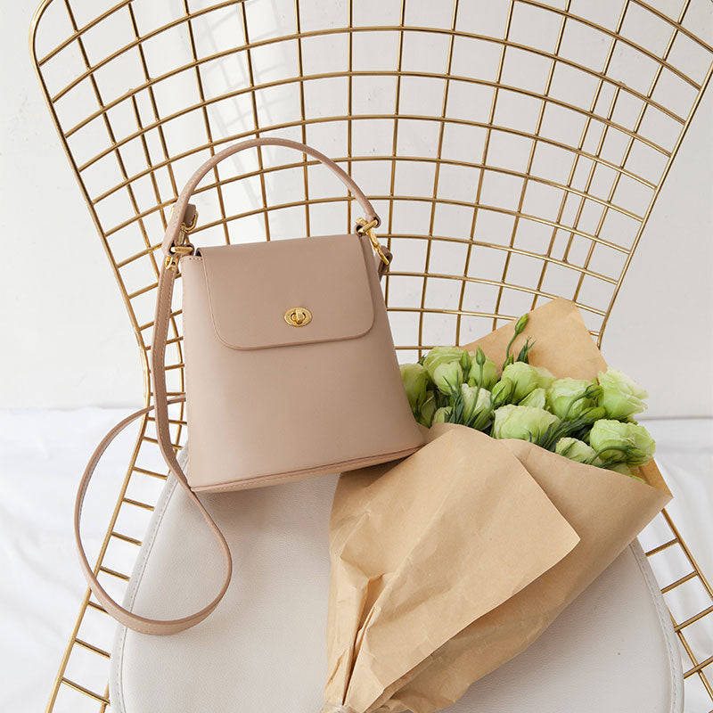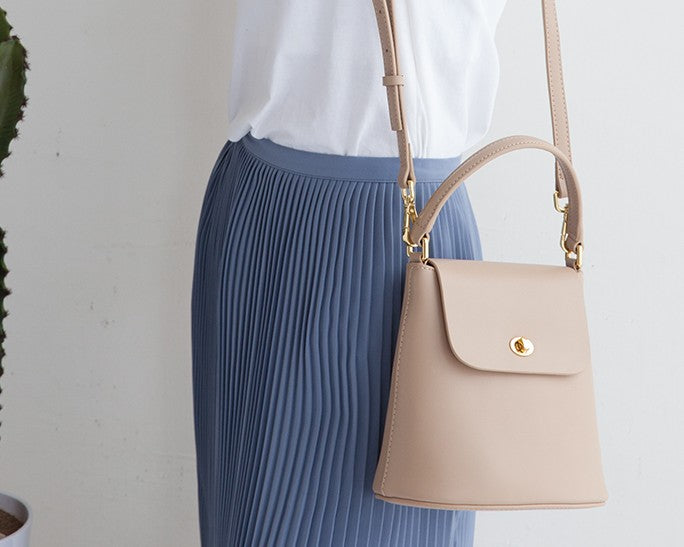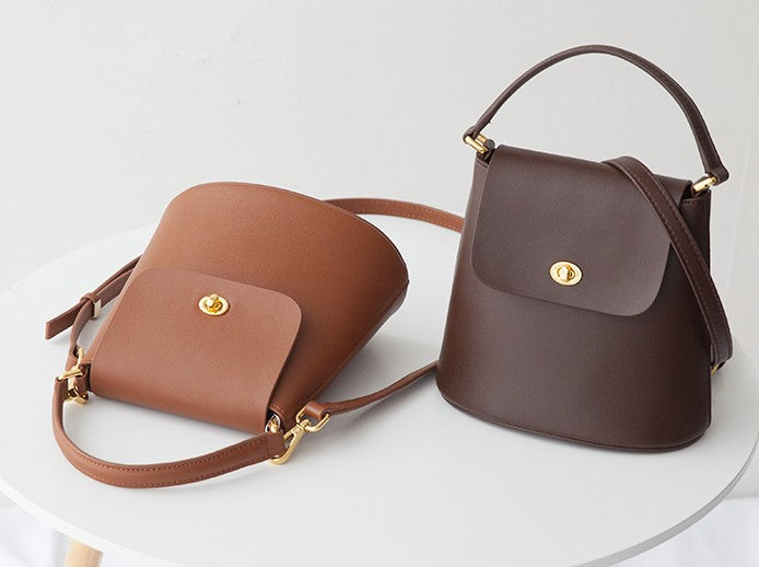 Design: Cute Leather Womens Stylish Bucket Handbag Crossbody Purse Barrel Shoulder Bag for Women