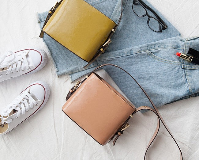 Design: Cute Leather Womens Stylish Bucket Shoulder Bag Barrel Crossbody Purse for Women
