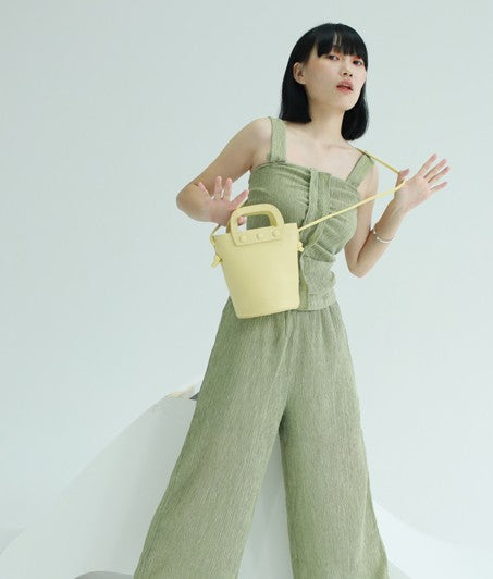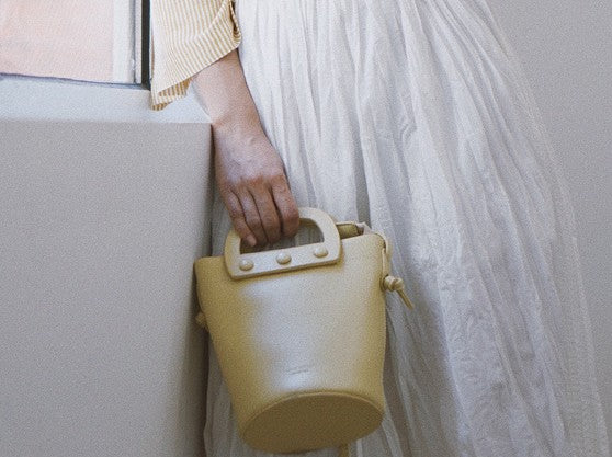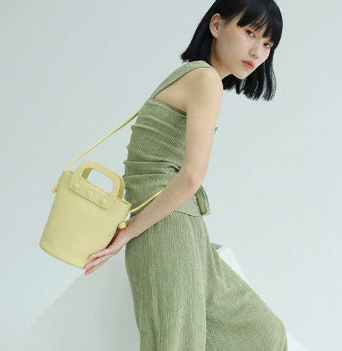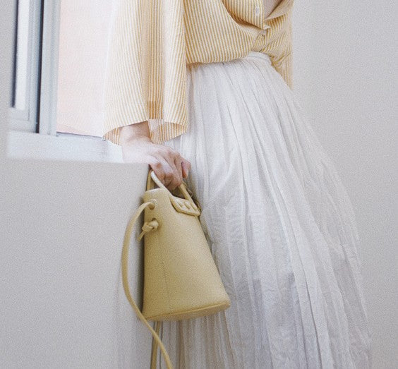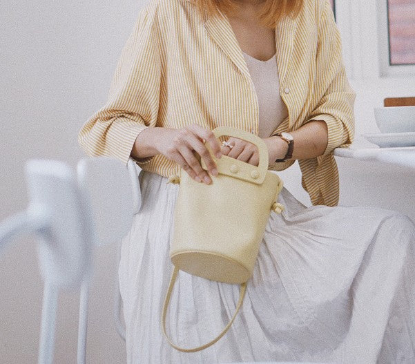 Style: Cute Leather Yellow Womens Mini Bucket Purse Handbag Barrel Shoulder Bag for Women