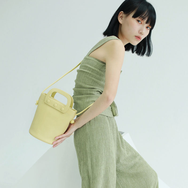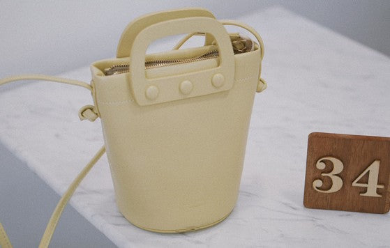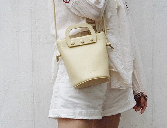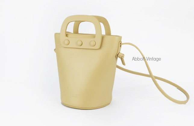 Design: Cute Leather Yellow Womens Mini Bucket Purse Handbag Barrel Shoulder Bag for Women