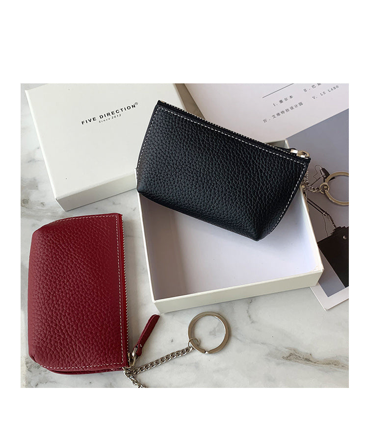 Design: Cute Women Black Leather Small Change Wallet Keychain with Wallet Zipper Coin Wallet For Women