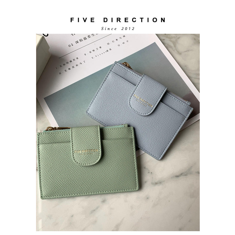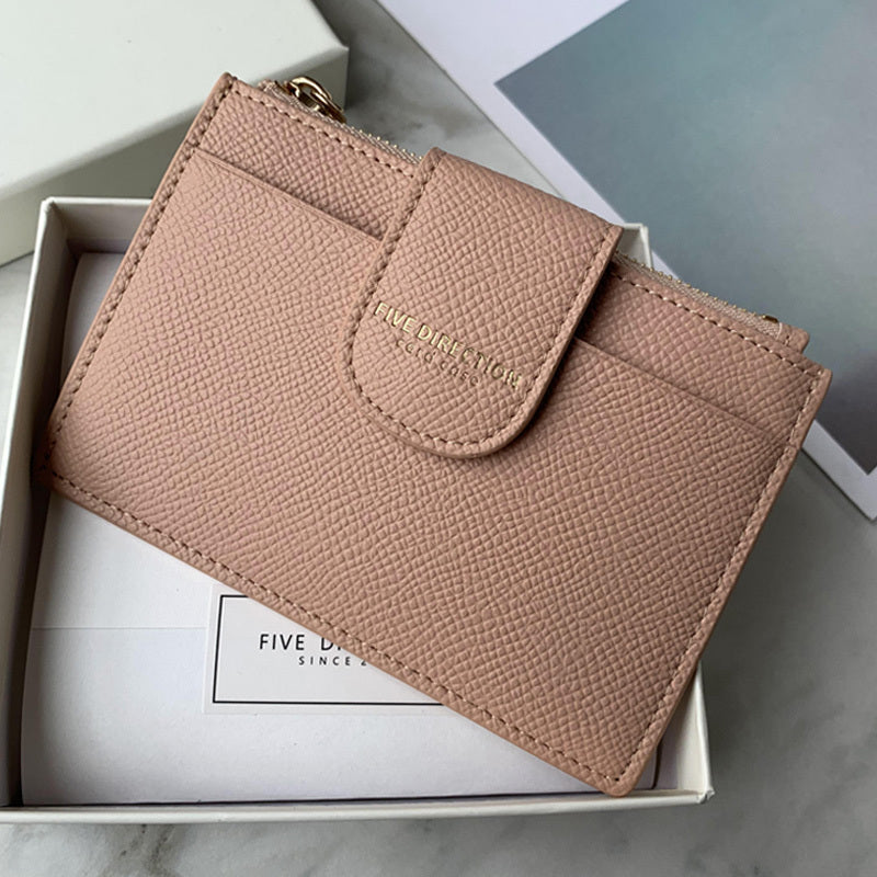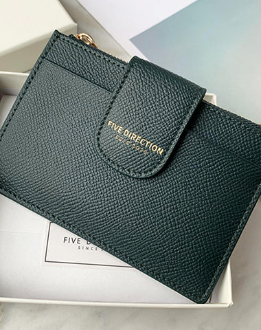 Slots: 5 card holders, 1 zipper slot, 1 change slot
