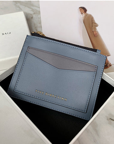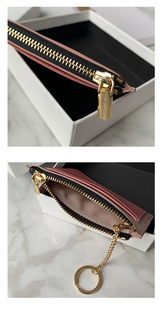 Style: Cute Women Black Vegan Leather Card Holders Slim KeyChain Card Wallet Zip Change Wallet For Women