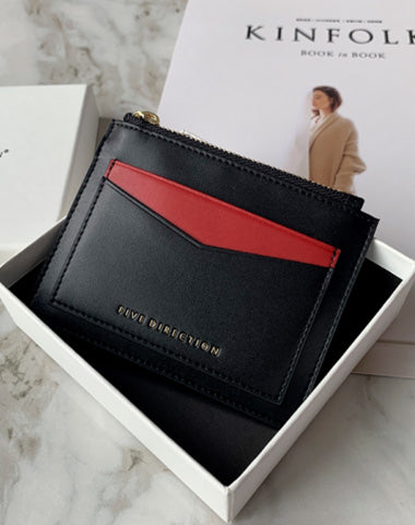 Design: Cute Women Black Vegan Leather Card Holders Slim KeyChain Card Wallet Zip Change Wallet For Women