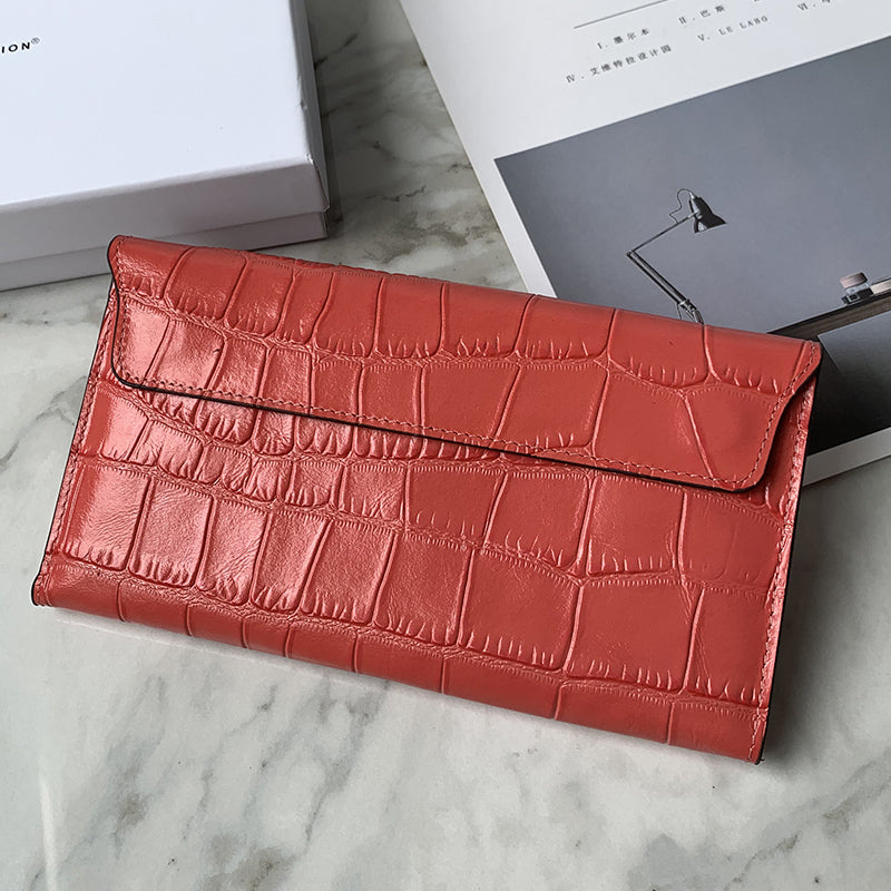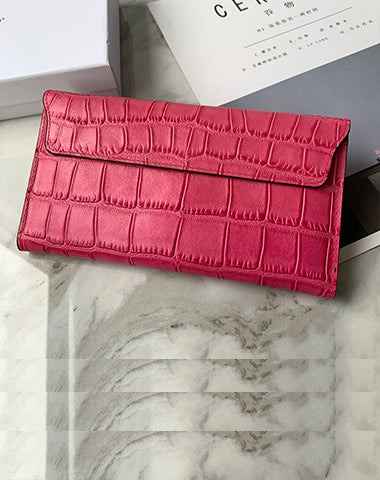Design: Cute Women Black Vegan Leather Long Wallet Crocodile Pattern Card Holder Clutch Wallet For Women