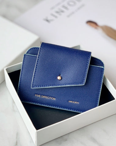 Style: Cute Women Blue Leather Card Holders Slim Card Wallet Coin Holder Change Wallet For Women
