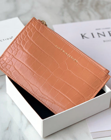 Design: Cute Women Brick Red Vegan Leather Card Holder Wallet with KeyChain Crocodile Pattern Card Wallet Zip Coin Change Wallet For Women