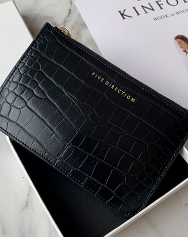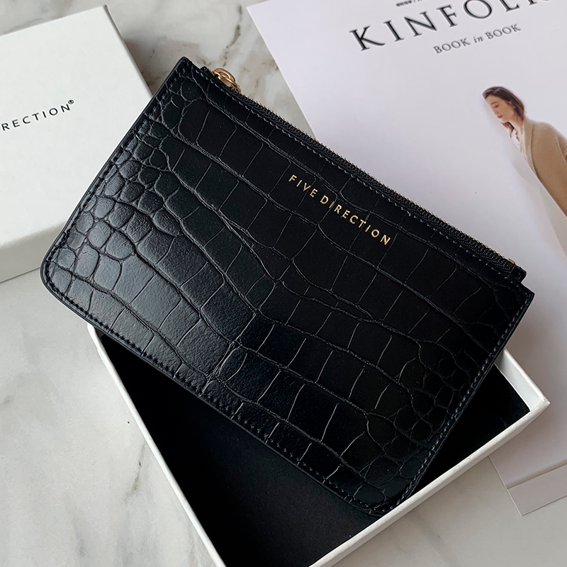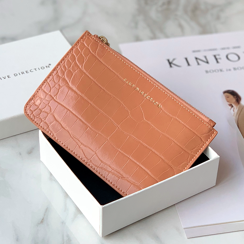 Cute Women Brick Red Vegan Leather Card Holder Wallet with KeyChain Crocodile Pattern Card Wallet Zip Coin Change Wallet For Women