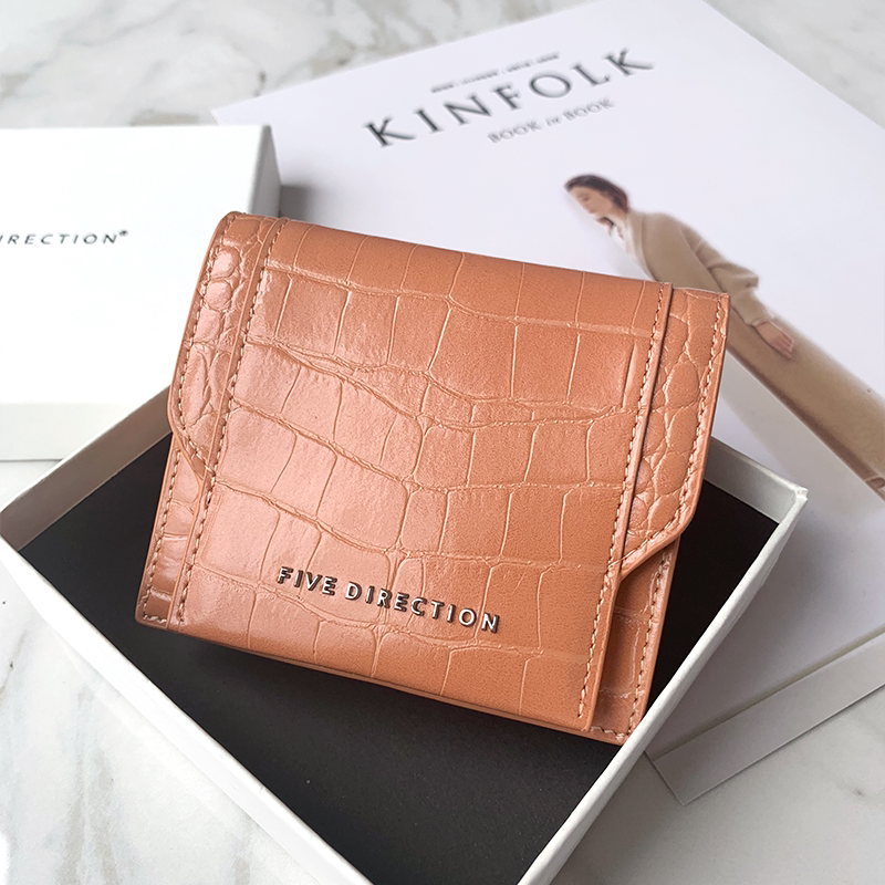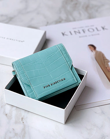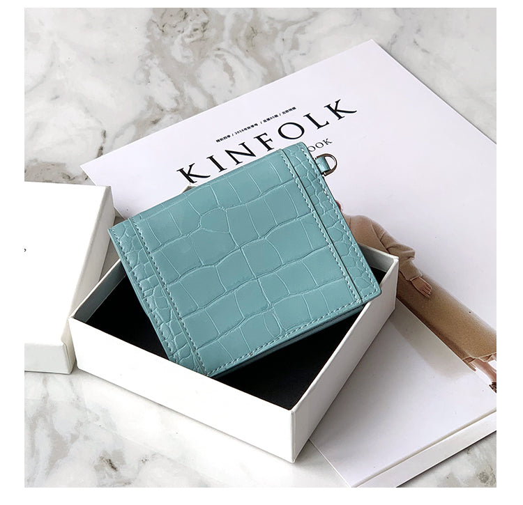 Style: Cute Women Brick Red Vegan Leather Small Card Holder Crocodile Pattern Card Wallets Slim Change Wallet For Women