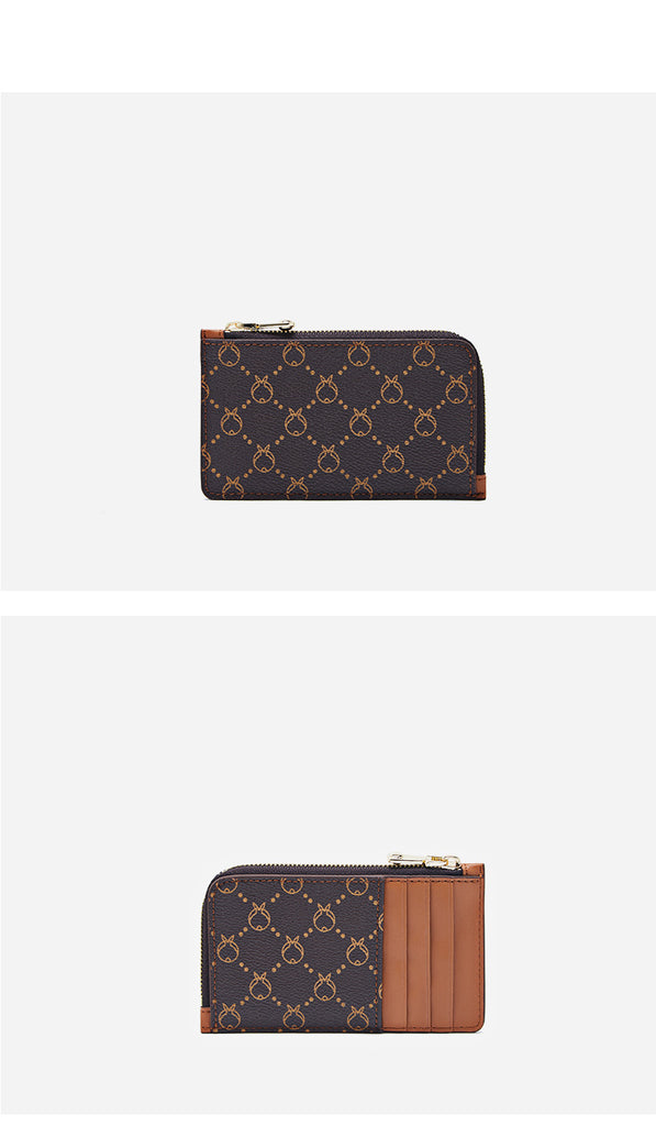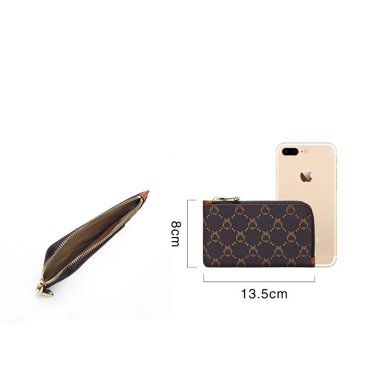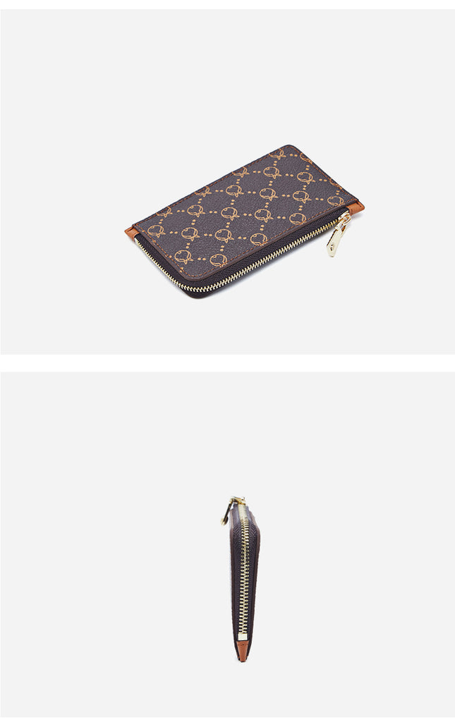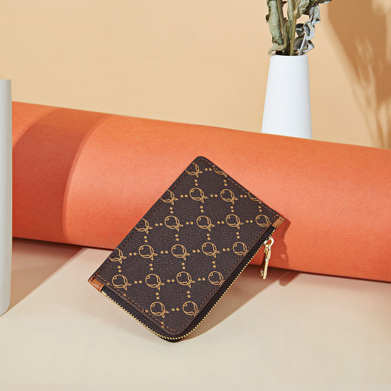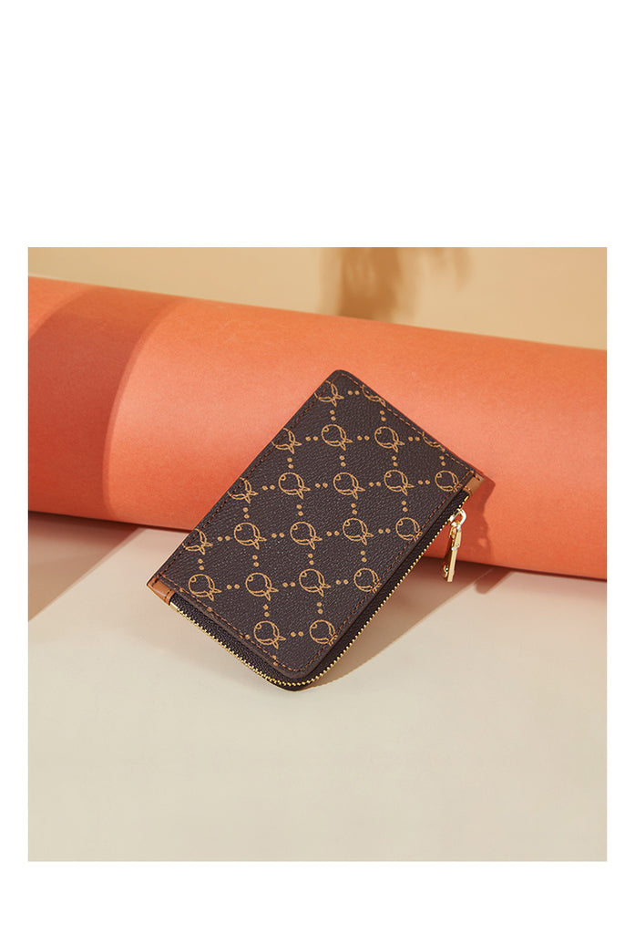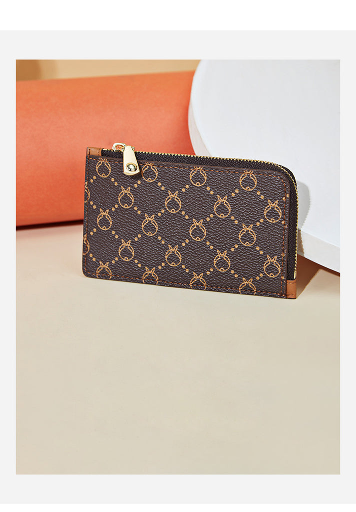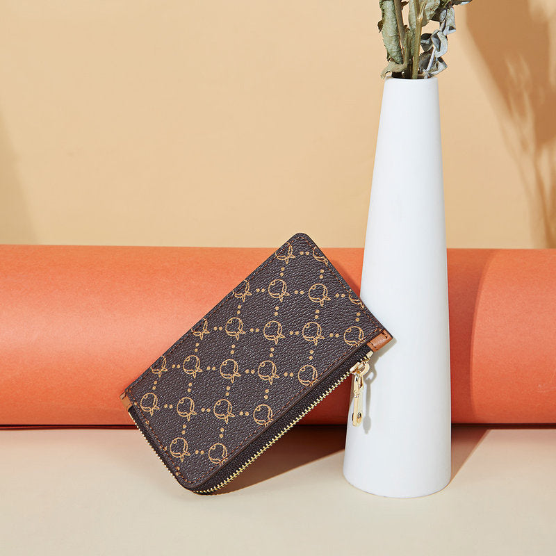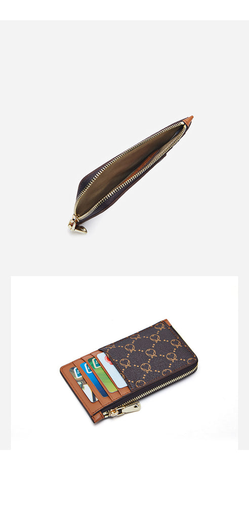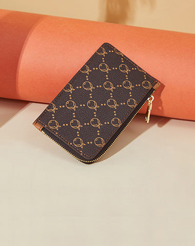 Style: Cute Women Coffee Vegan Leather Slim Zipper Wallet Small Card Holder Change Wallet For Women