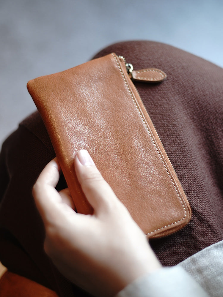 Design: Cute Women Coffee Zip Leather Wallet Zip Clutch Wallet Slim Zip Wallet For Women