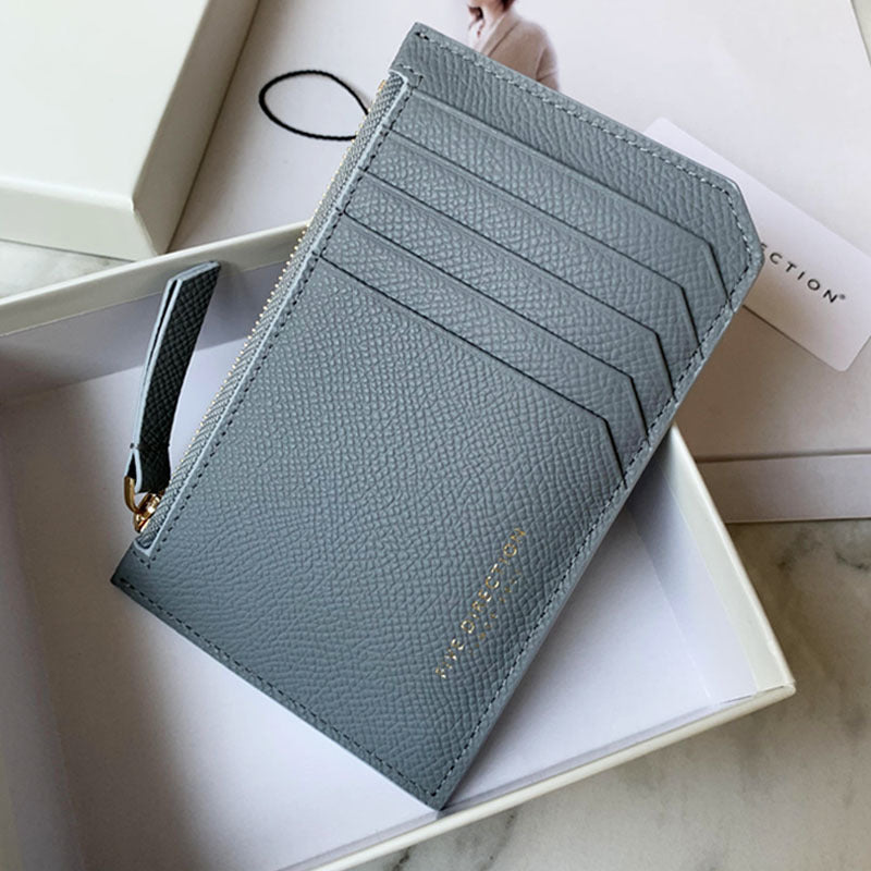 Style: Cute Women Gray Blue Leather Slim Card Holder Card Wallet Zipper Change Wallet For Women