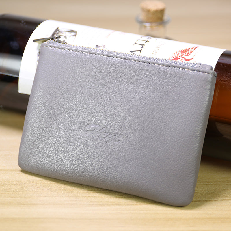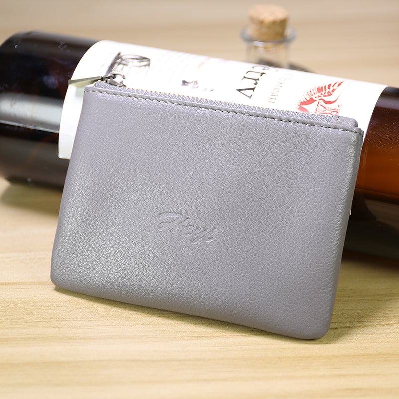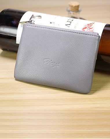 Cute Women Gray Leather Mini Zip Coin Wallet Change Wallet Zipper Change Wallet For Women