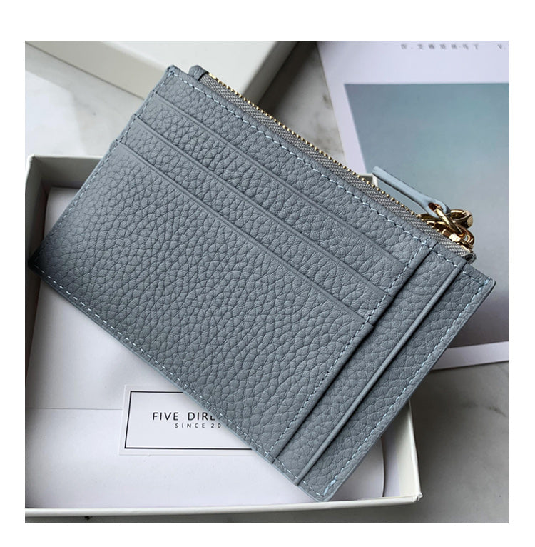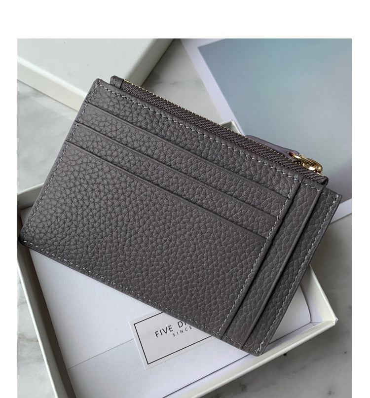 Design: Cute Women Gray Leather Slim Keychain with Card Wallet Card Holder Wallet Change Wallet For Women