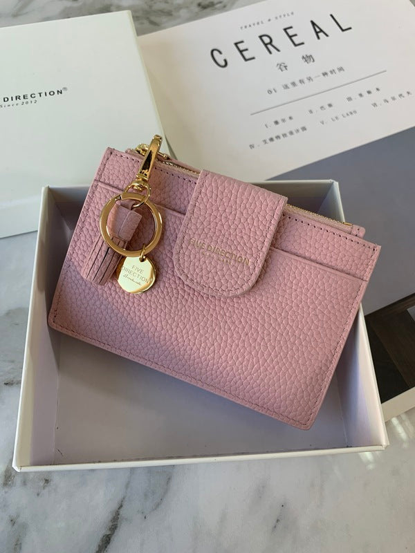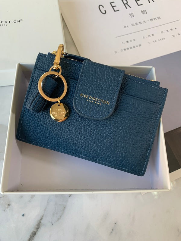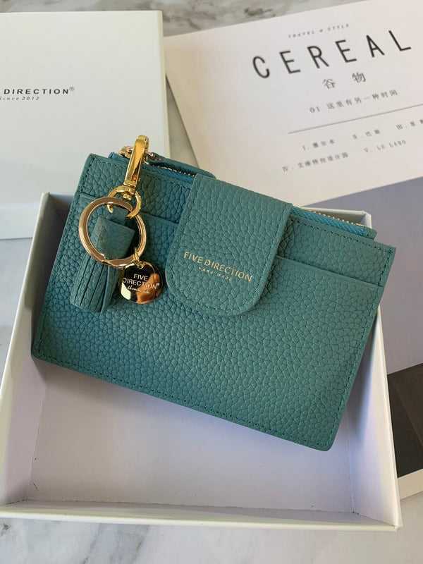 Style: Cute Women Gray Leather Slim Keychain with Card Wallet Card Holder Wallet Change Wallet For Women