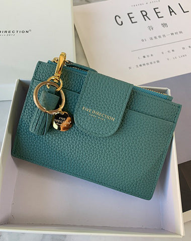 Design: Cute Women Green Leather Slim Keychain with Card Wallet Card Holder Wallet Change Wallet For Women