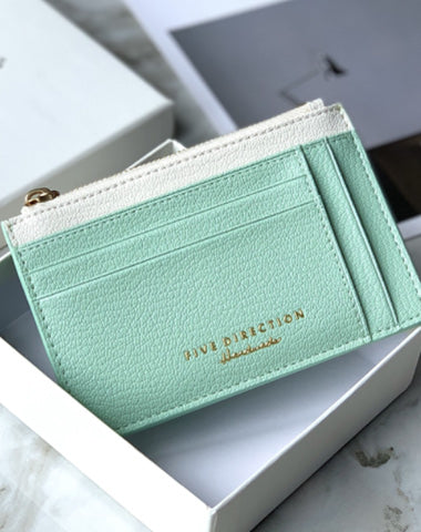 Design: Cute Women Green Vegan Leather Slim Card Holders Small Card Wallet Card Holder Credit Card Holder For Women