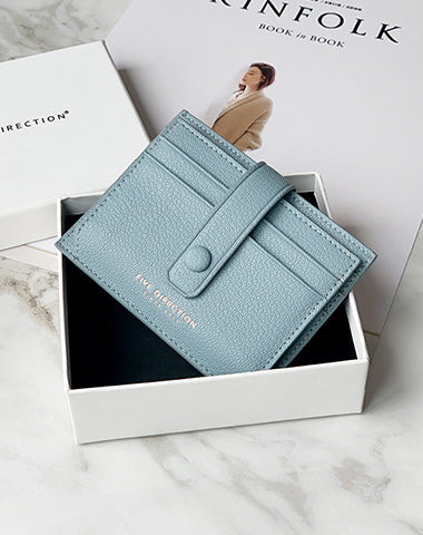Design: Cute Women Light Blue Vegan Leather Small Card Holder Card Wallets Slim Card Holders Credit Card Holder For Women