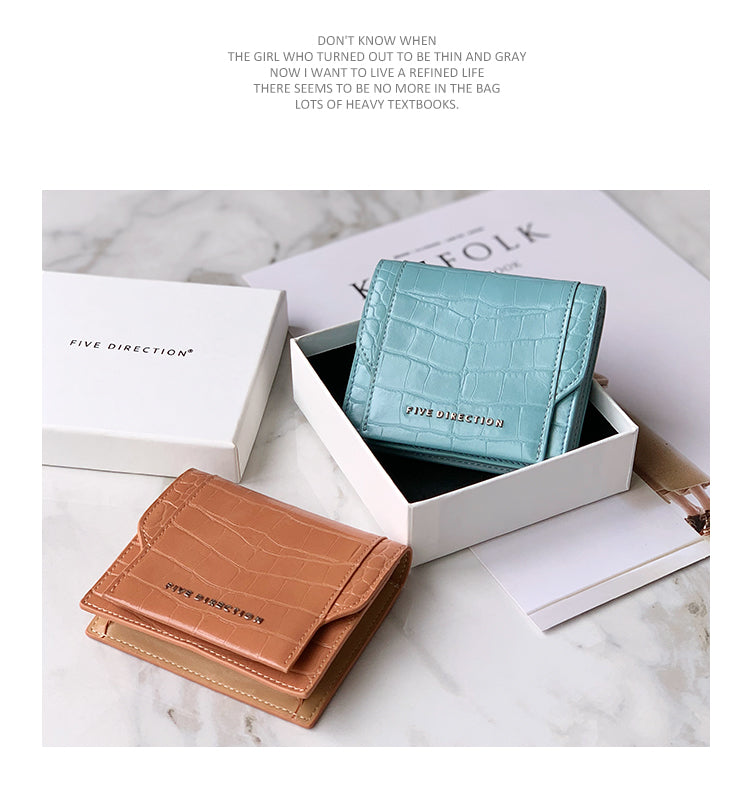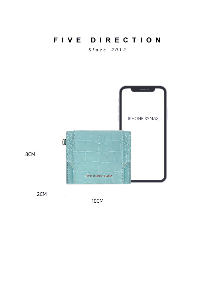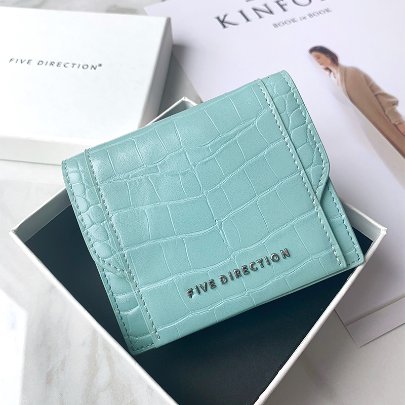 Style: Cute Women Mint Green Vegan Leather Small Card Holder Crocodile Pattern Card Wallets Slim Change Wallet For Women