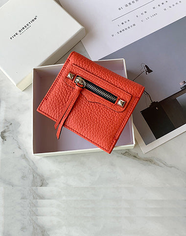 Design: Cute Women Orange Leather Card Holders Slim Card Wallet Orange Bifold Credit Card Holder For Women