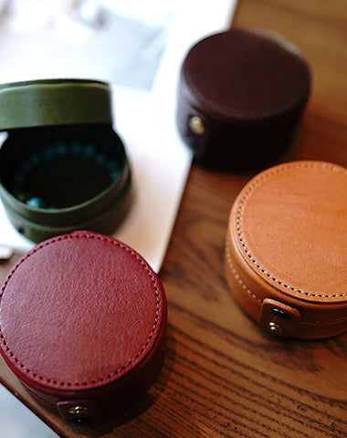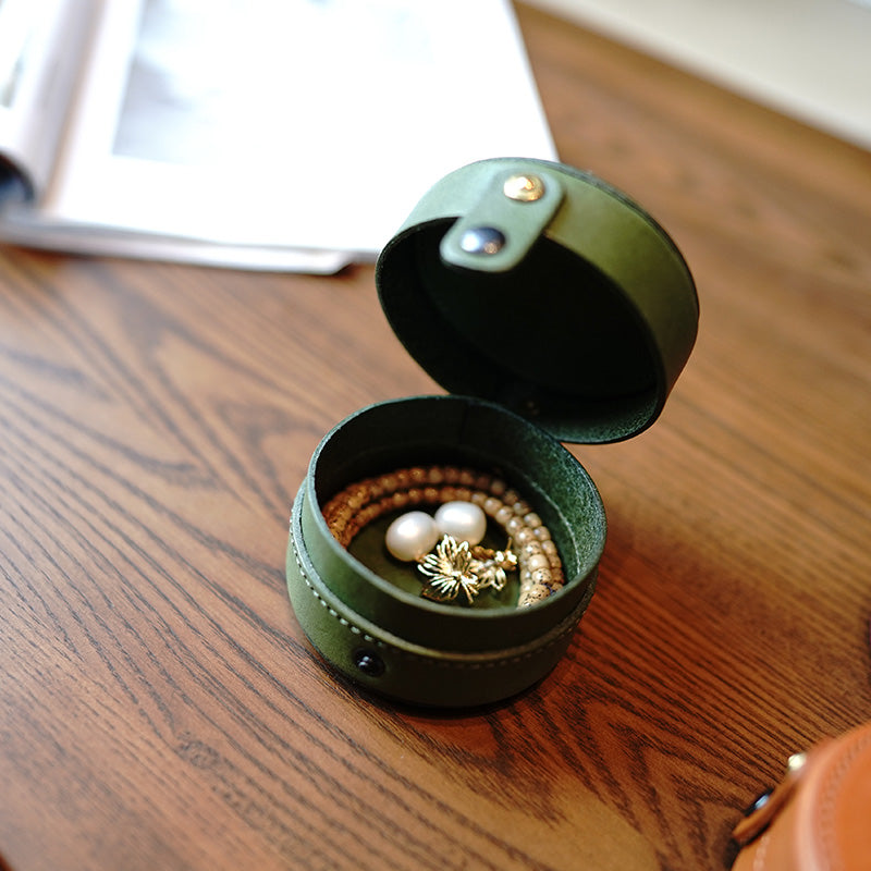 Design: Cute Women Leather Round Coin Wallet Box Small Portable Jewelry Storage Box For Women