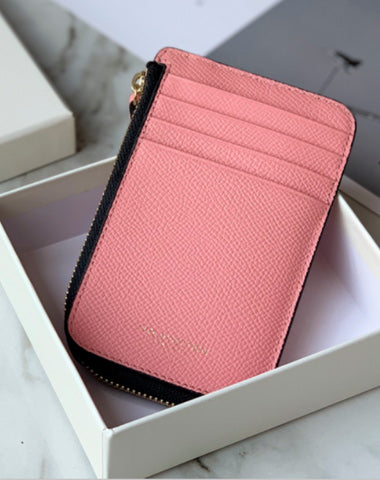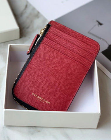 Design: Cute Women Red Leather Slim Round Card Holder Card Wallet Zipper Change Wallet For Women