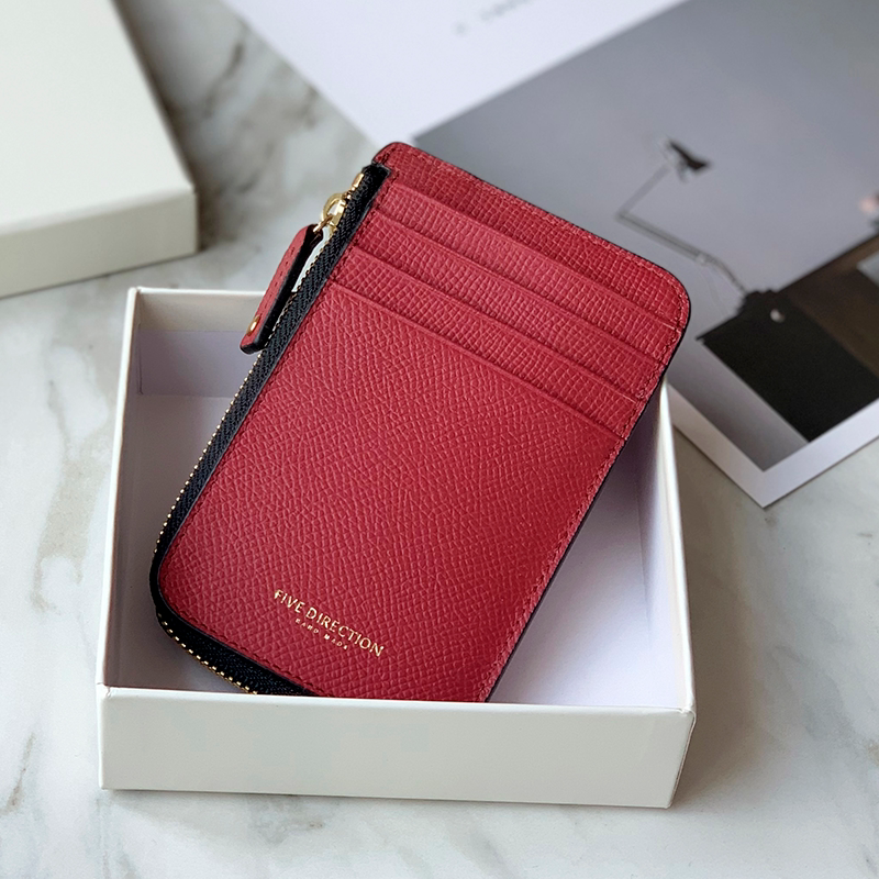 Style: Cute Women Red Leather Slim Round Card Holder Card Wallet Zipper Change Wallet For Women